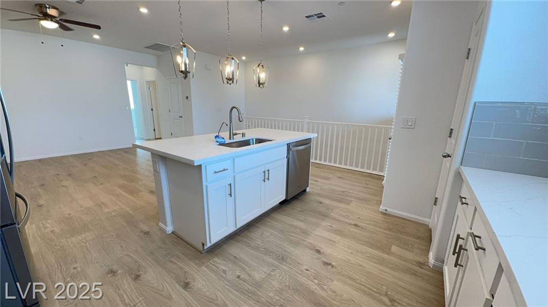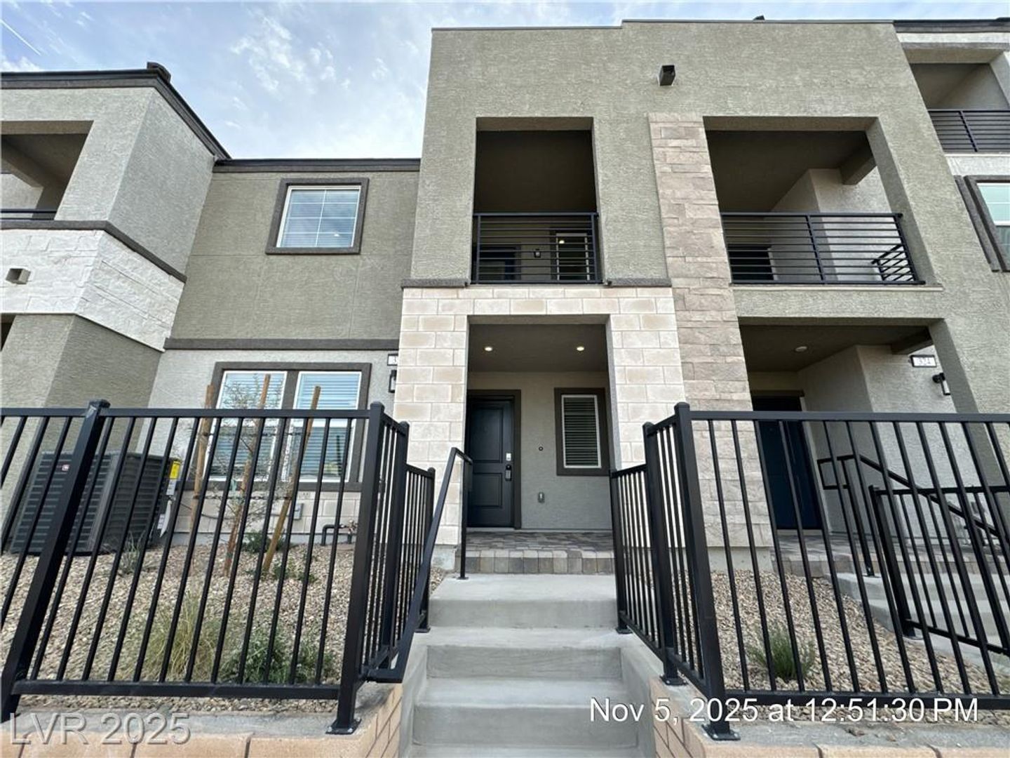 Stylish and inviting 3-bed, 2-bath townhome in the sought-after Cadence community, complete with energy-efficient solar. Enjoy access to a resort-style pool, splash pads, multiple parks, playgrounds, walking/biking trails, and vibrant community gathering spaces. The primary bedroom is located on the first floor for added privacy and features a walk-in closet, dual sinks, and a modern walk-in shower. Upstairs, the open-concept great room flows into the contemporary kitchen with a large island, quartz counters, and stainless-steel appliances—perfect for everyday living or entertaining. Step out onto the balcony for morning coffee or evening relaxation. Two additional bedrooms upstairs offer flexibility for guests, family, or office space. Attached two-car garage. Conveniently located near shopping, dining, and major road access.