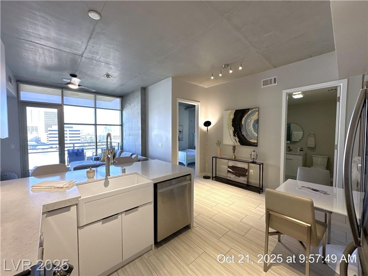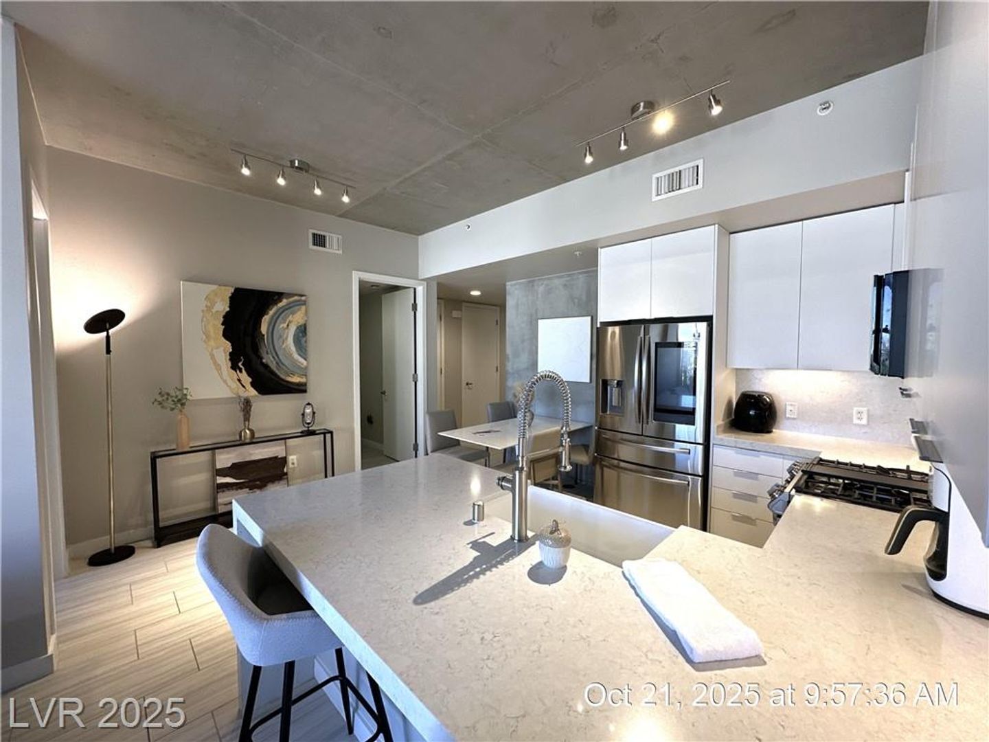 Step into luxury living at The Juhl, a vibrant high-rise Downtown community. This fully furnished designer unit is move-in ready! You'll love the stainless steel appliances, granite counters, and sleek modern cabinetry (seriously, a dream kitchen!). The open layout is filled with natural light from stunning floor-to-ceiling windows that showcase unbeatable views of the city and mountains. Plank flooring throughout the living areas, paired with stylish modern furnishings that make the space feel like home. Step onto your balcony, sip a glass of wine and take in the glow of the Vegas lights. The Juhl offers amazing amenities: resort-style pool, outdoor lounge, fitness center, business hub, concierge, and much more. Pets accepted! Unit can be unfurnished if you prefer!