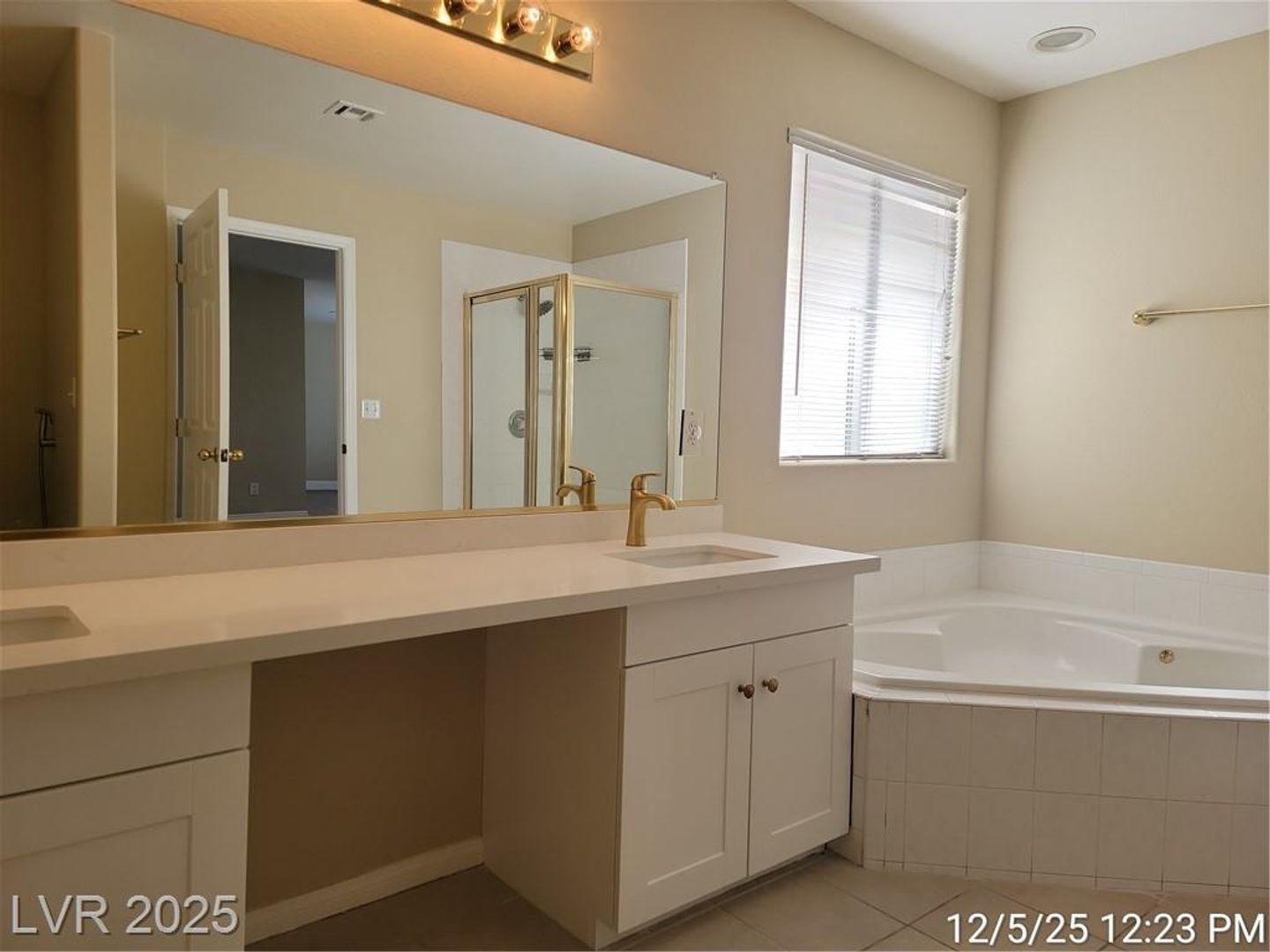 This spacious 4-bedroom, 3-bath residence is conveniently located just minutes from the 215, shopping, dining, and highly rated schools. Inside, a well-designed floorplan offers comfortable living spaces, including a separate kitchen with a cozy nook perfect for casual meals. Upstairs, you’ll find generously sized bedrooms and a welcoming primary suite complete with a sitting area, walk-in closet, and private bath. The low-maintenance backyard, covered patio, and private basketball court provide great outdoor enjoyment and entertaining space.