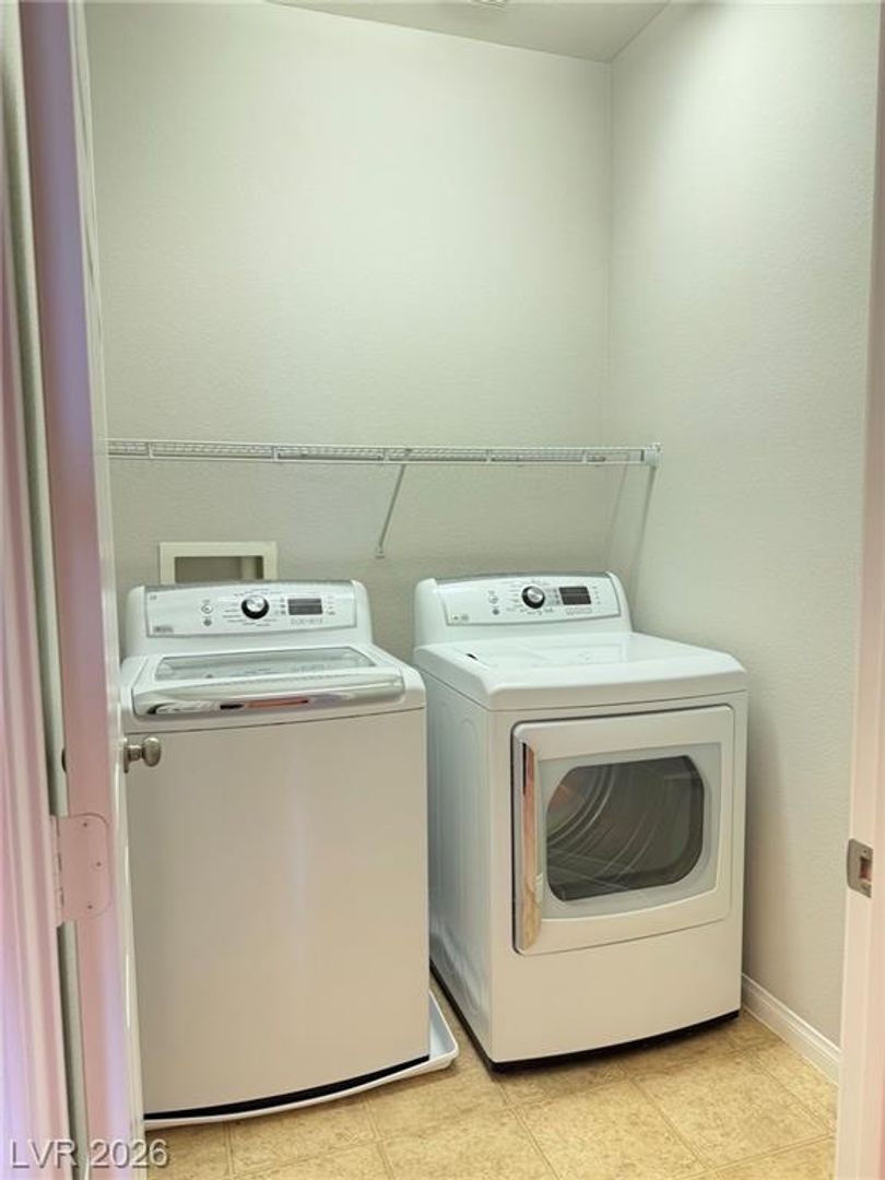 Beautiful two-story townhome in North Las Vegas featuring modern upgrades and thoughtful design throughout! The stylish kitchen boasts all stainless steel appliances, upgraded cabinetry, and gorgeous granite countertops—perfect for cooking and entertaining. Enjoy a covered patio with low-maintenance synthetic grass, ideal for relaxing outdoors. The home offers a convenient downstairs bedroom, while all additional bedrooms and the laundry area (washer and dryer included) are located upstairs. The spacious primary suite features dual sinks and a walk-in closet. Ceiling fans and window blinds are installed throughout for comfort and convenience. Minimal landscaping makes upkeep a breeze. Small pet (cat or dog) will be considered—don’t miss this fantastic opportunity! Property has SOLAR. Landscape included in rent