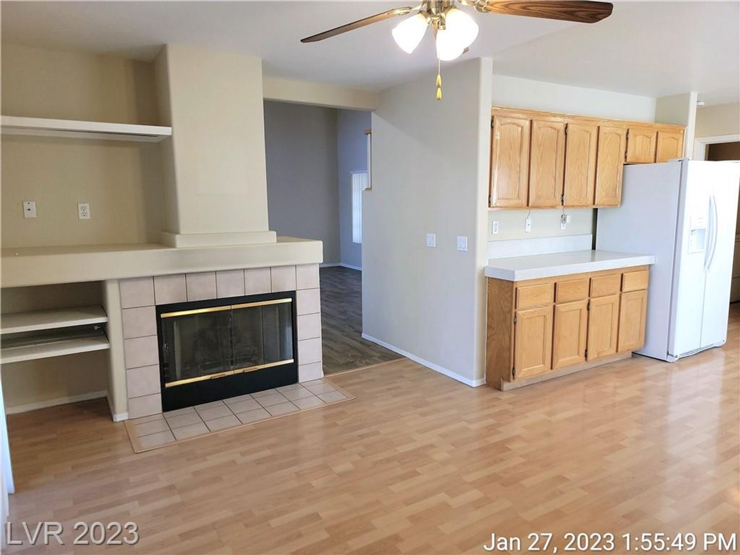 HEART OF GREEN VALLEY!! Great home features gorgeous wood plank flooring throughout1st floor, formal living & dining room. Open & spacious kitchen with quartz counters & abundance of cabinet & storage space stretches out to family room with cozy fireplace. Nice size primary bedroom with mirror closet doors, double sinks & tub/shower combo. Enjoy relaxing views from primary bedroom balcony. Nice size secondary beds. Ceiling fans throughout. Backyard with covered patio. Great amenities include gorgeous park areas & playgrounds.