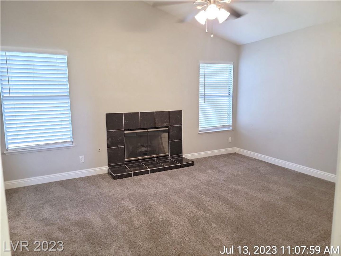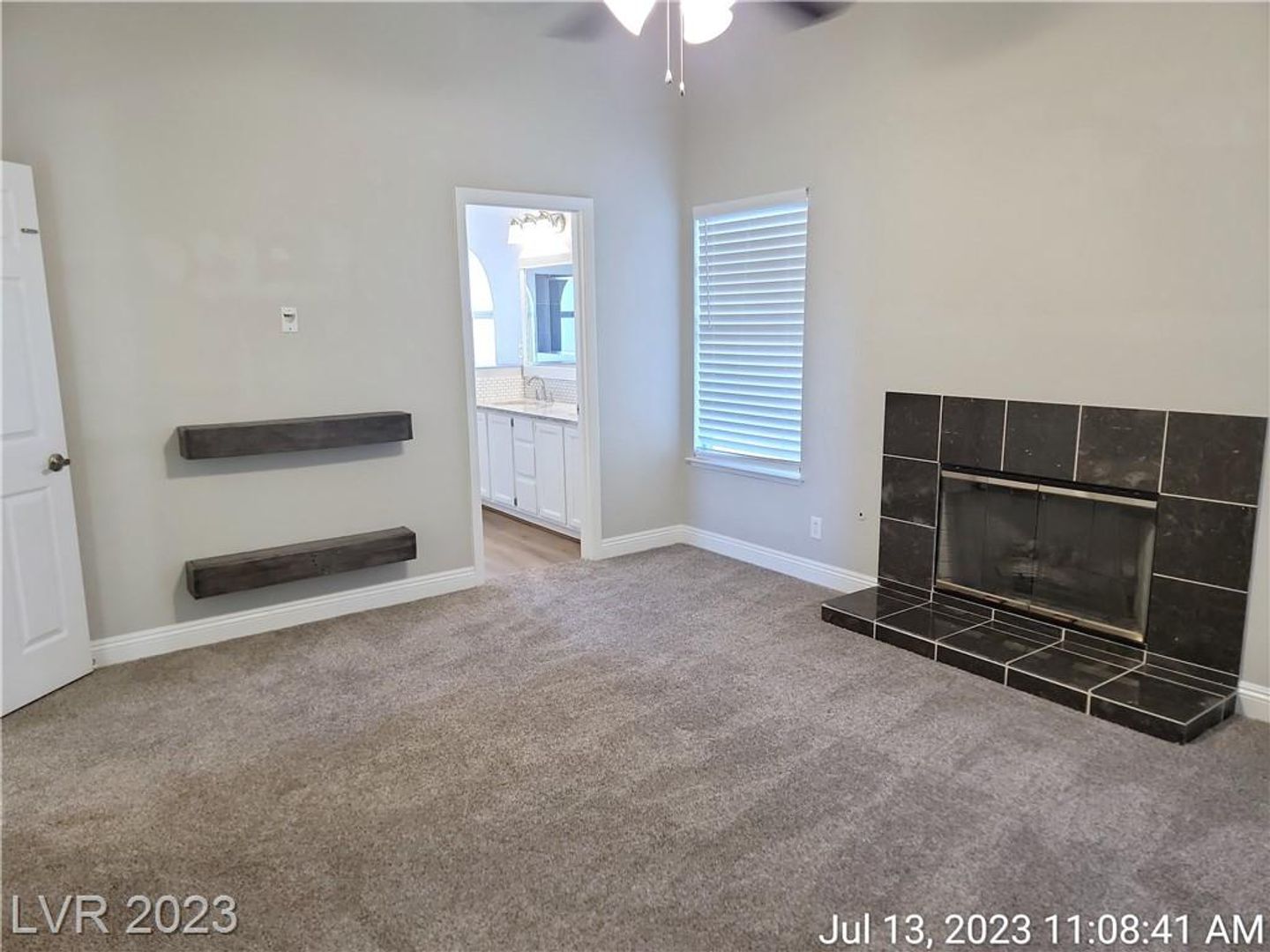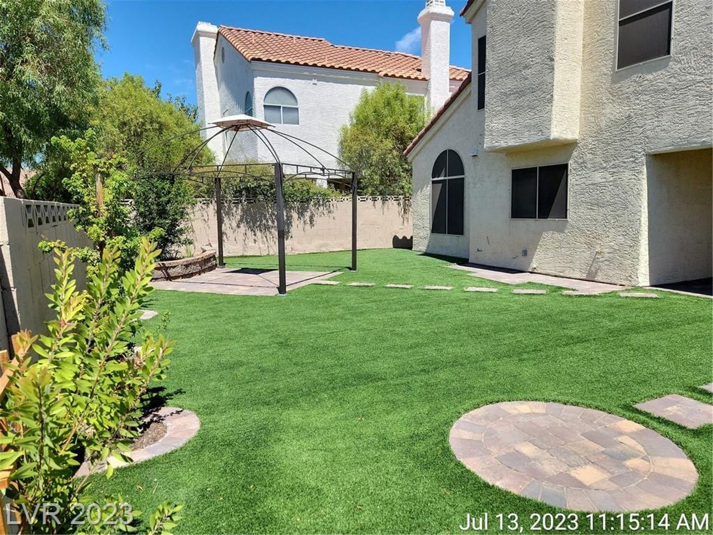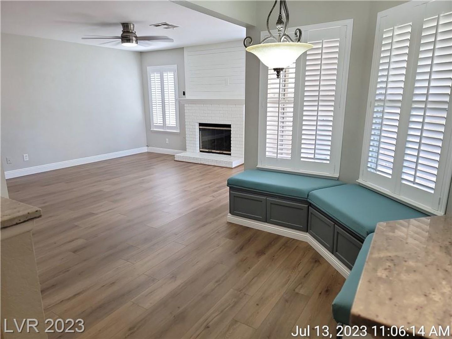 This stunning two-story home is perfectly situated in the heart of Green Valley. With beautiful wood laminate flooring throughout the first floor, the home offers an open and bright formal living/dining area with high ceilings. The chef's dream kitchen is tastefully upgraded with a nook, island, quartz counters, stainless appliances, and custom cabinets, seamlessly flowing into a spacious family area with a cozy fireplace and wet bar. The primary suite is impressively large, featuring a warming fireplace, custom walk-in closet, double sinks, and a separate tub and shower. Ceiling fans are present throughout the home, and the low-maintenance backyard boasts synthetic grass, creating an ideal space for relaxation.