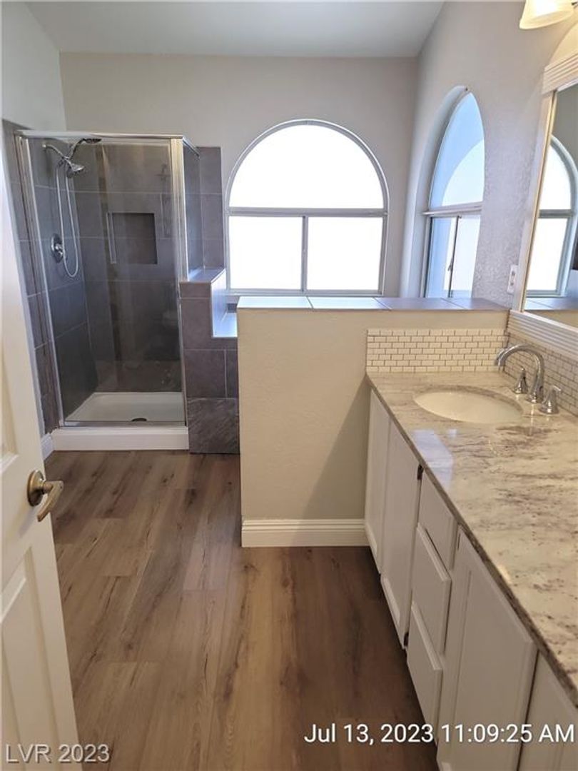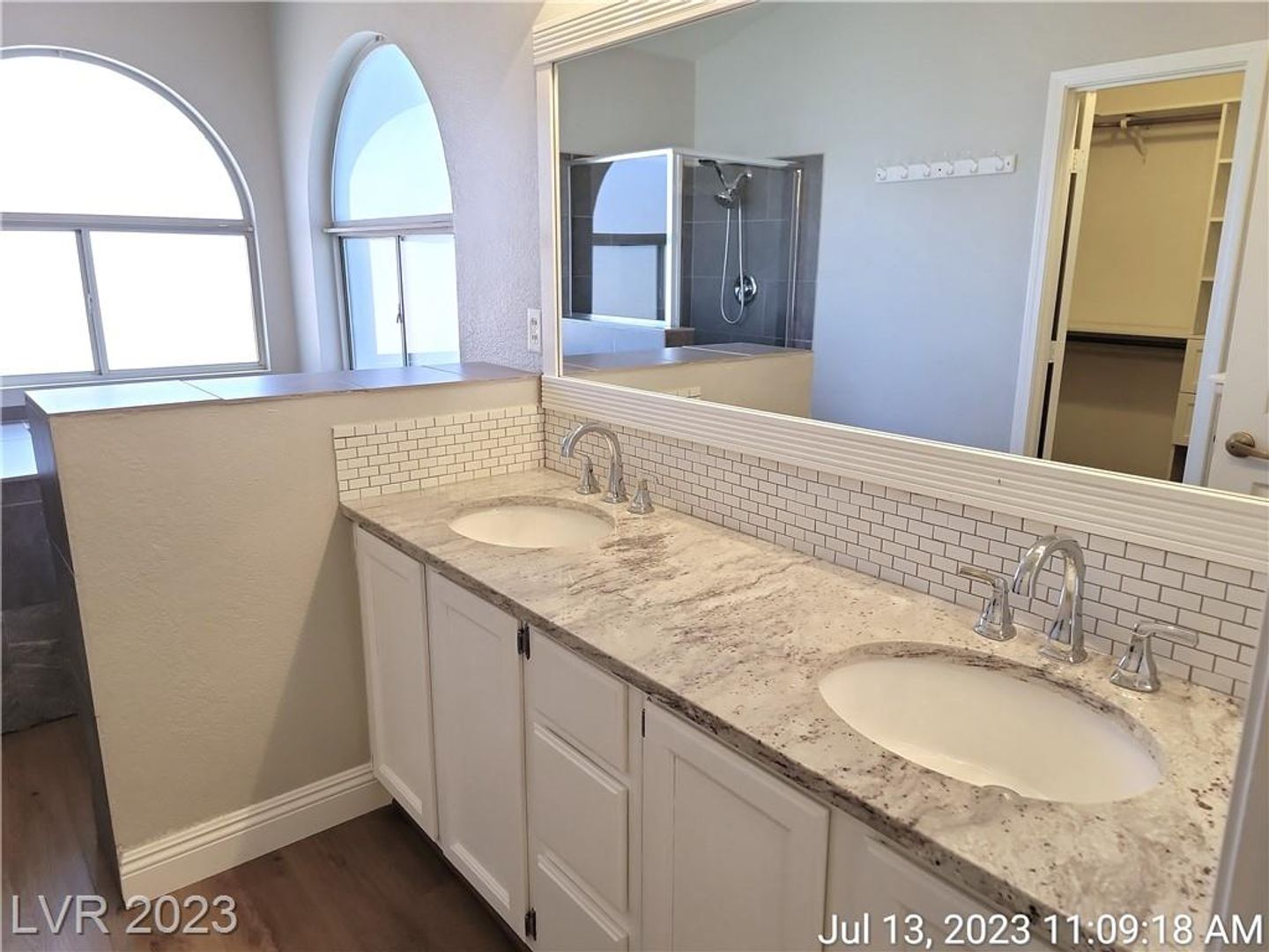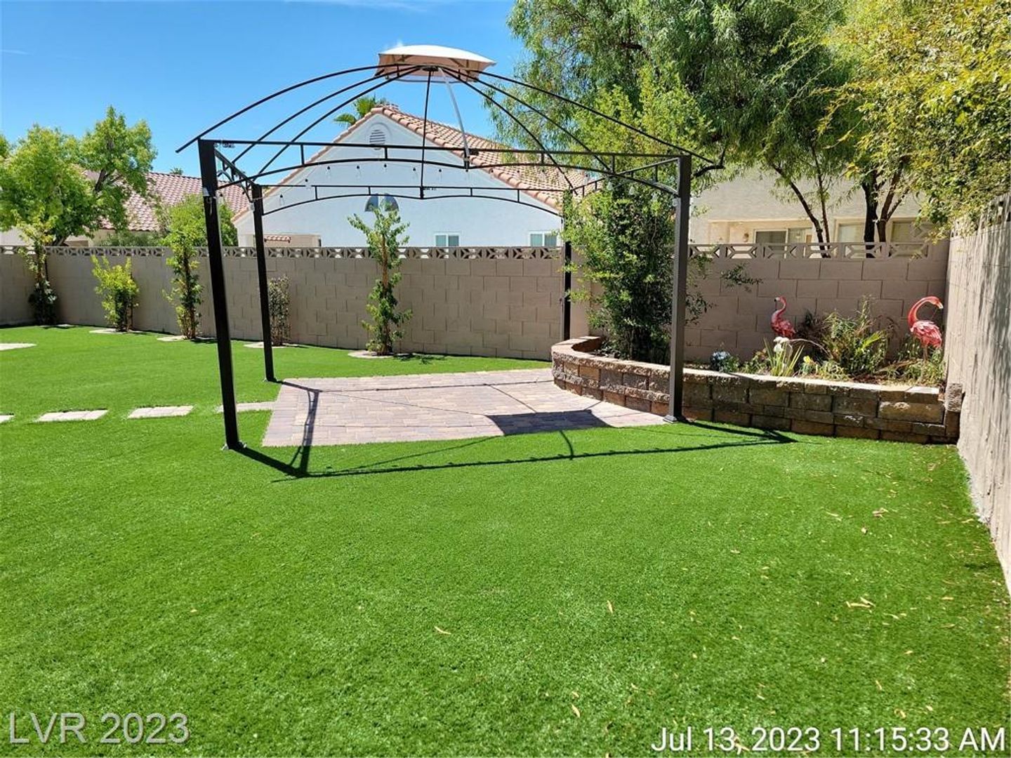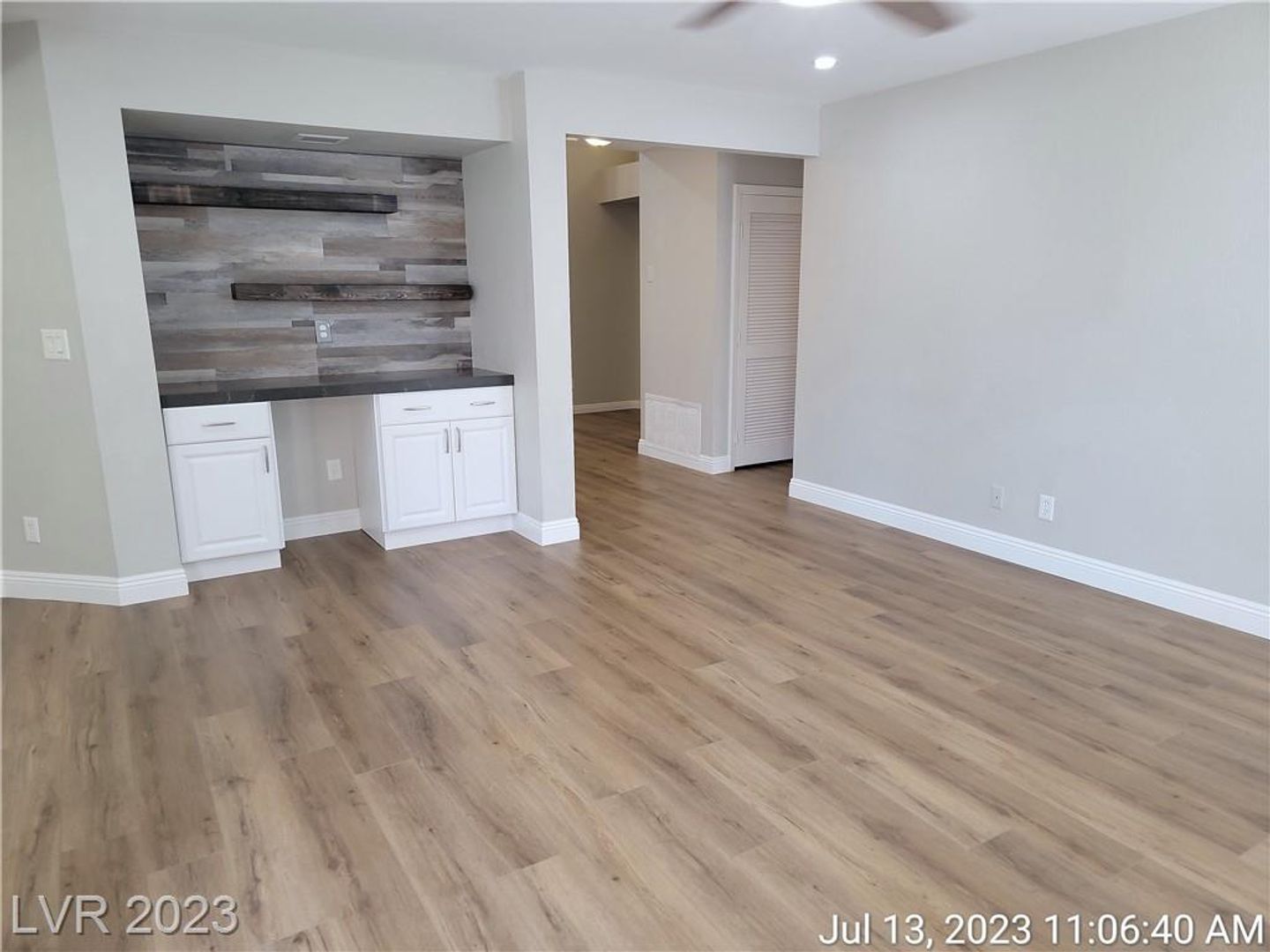 This stunning two-story home is perfectly situated in the heart of Green Valley. With beautiful wood laminate flooring throughout the first floor, the home offers an open and bright formal living/dining area with high ceilings. The chef's dream kitchen is tastefully upgraded with a nook, island, quartz counters, stainless appliances, and custom cabinets, seamlessly flowing into a spacious family area with a cozy fireplace and wet bar. The primary suite is impressively large, featuring a warming fireplace, custom walk-in closet, double sinks, and a separate tub and shower. Ceiling fans are present throughout the home, and the low-maintenance backyard boasts synthetic grass, creating an ideal space for relaxation.