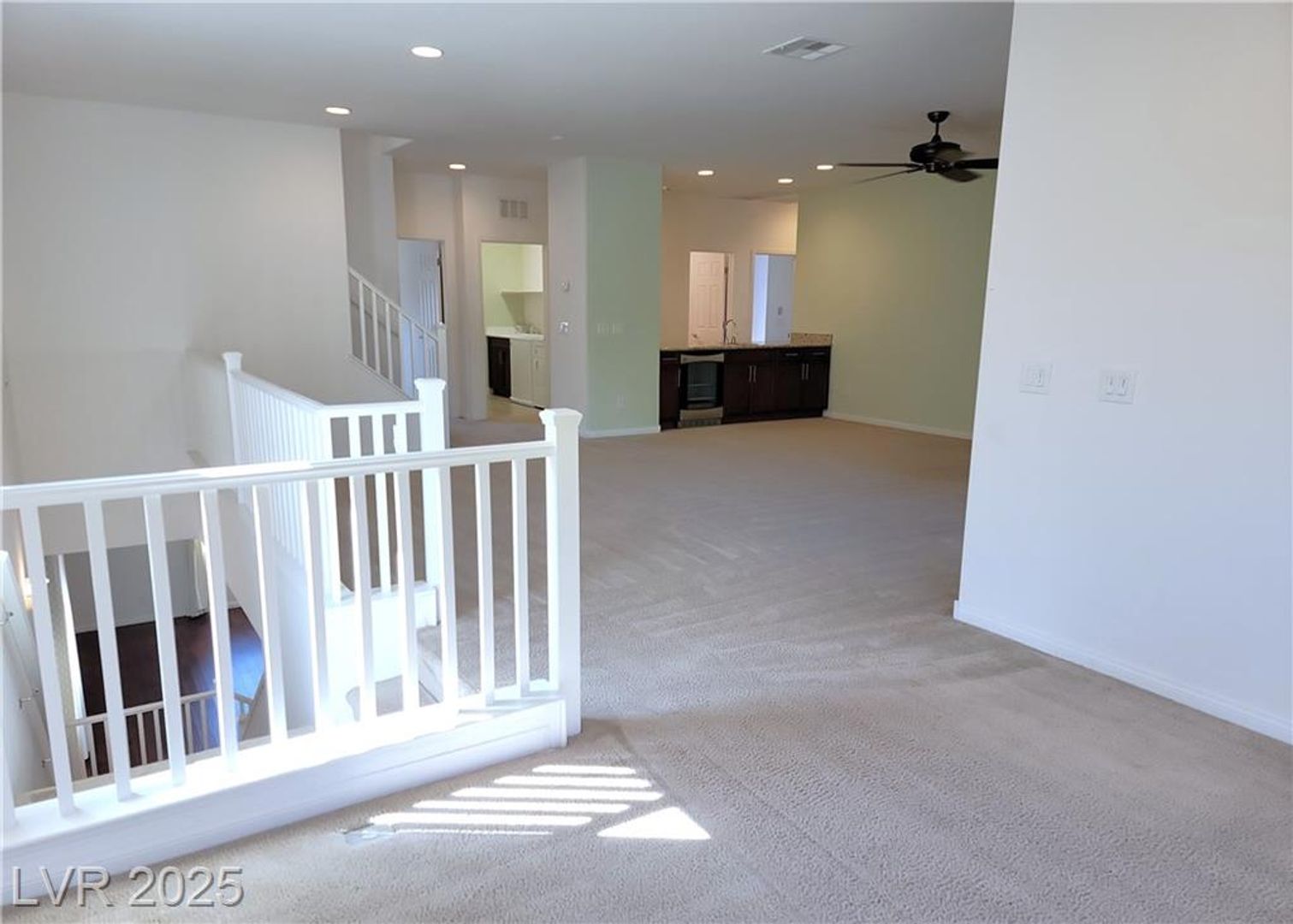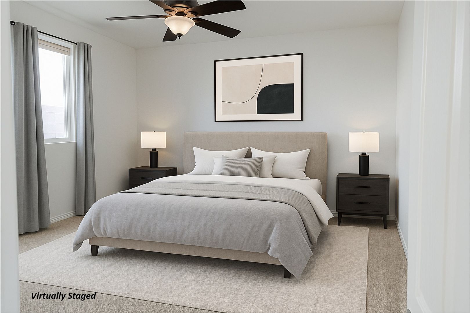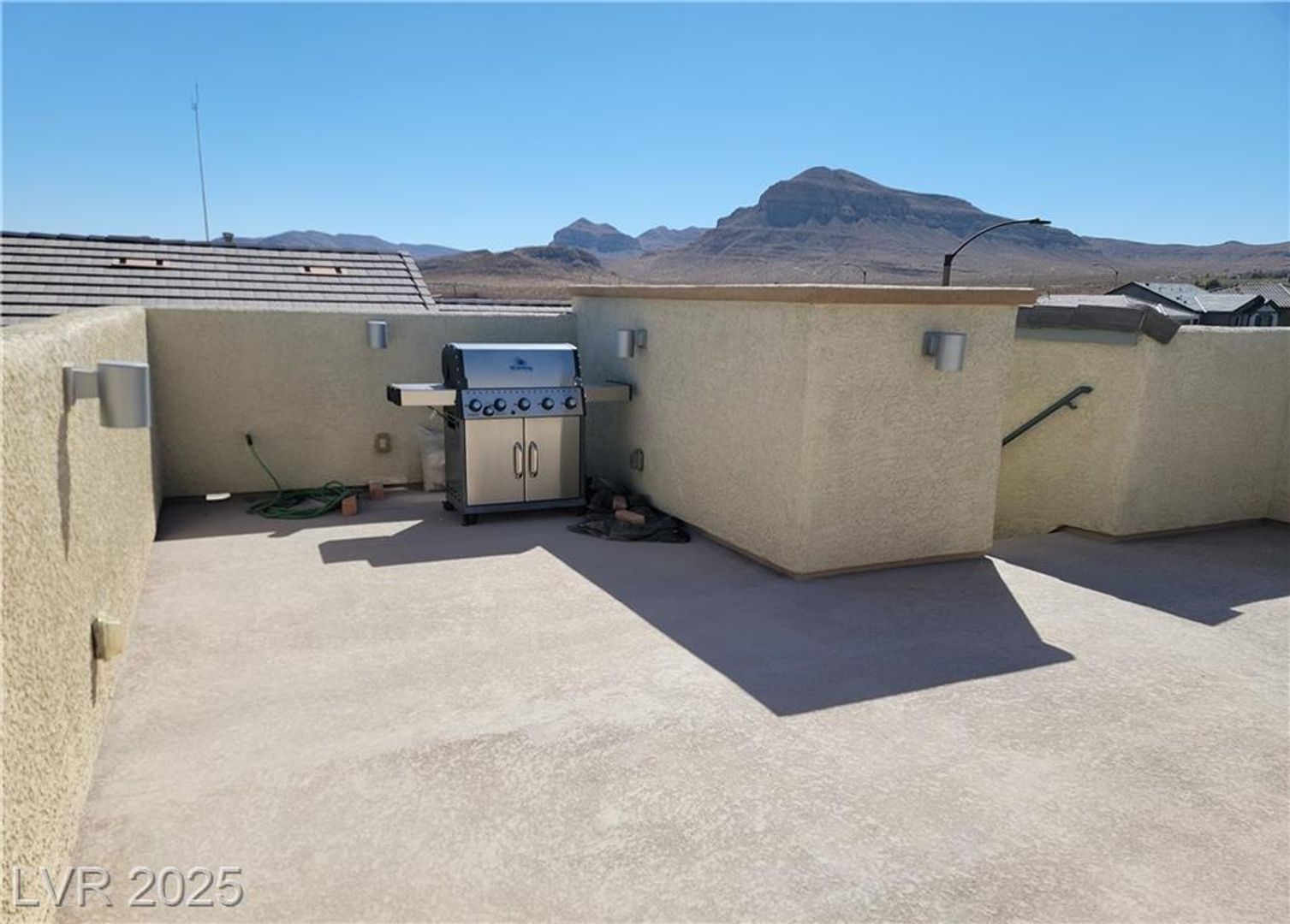 OUTSTANDING MOUNTAINS EDGE HOME IN A GATED COMMUNITY! This impressive home features a rooftop deck with stunning mountain views and an open great room with warm wood-plank flooring. The upgraded kitchen is perfect for cooking and entertaining—and a brand-new stainless-steel, double-door LG fridge will be installed before move-in. A spacious upstairs loft with wet bar and office nook provides excellent flex space, while the private downstairs primary suite includes a walk-in closet, dual sinks, stackable washer/dryer, and oversized shower. Generously sized secondary bedrooms add comfort throughout. Enjoy the beautifully landscaped backyard with covered patio, synthetic grass, and fruit trees. Community amenities include three pools, clubhouse, fitness center, basketball court, and playground—all within the highly desirable Mountains Edge area.