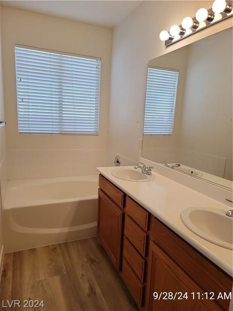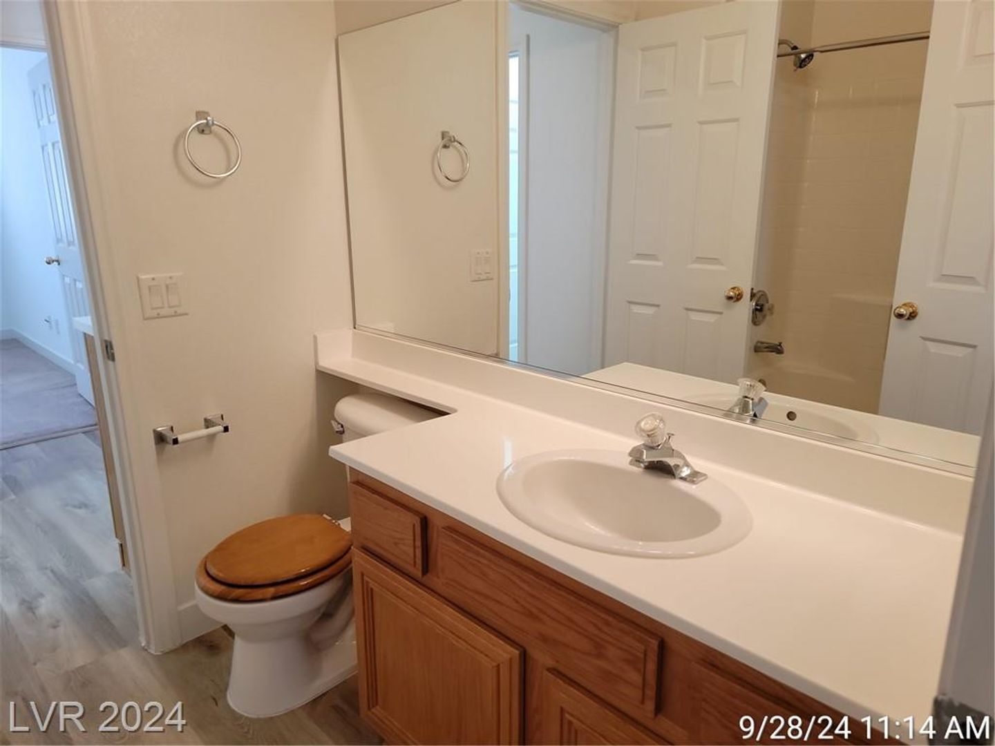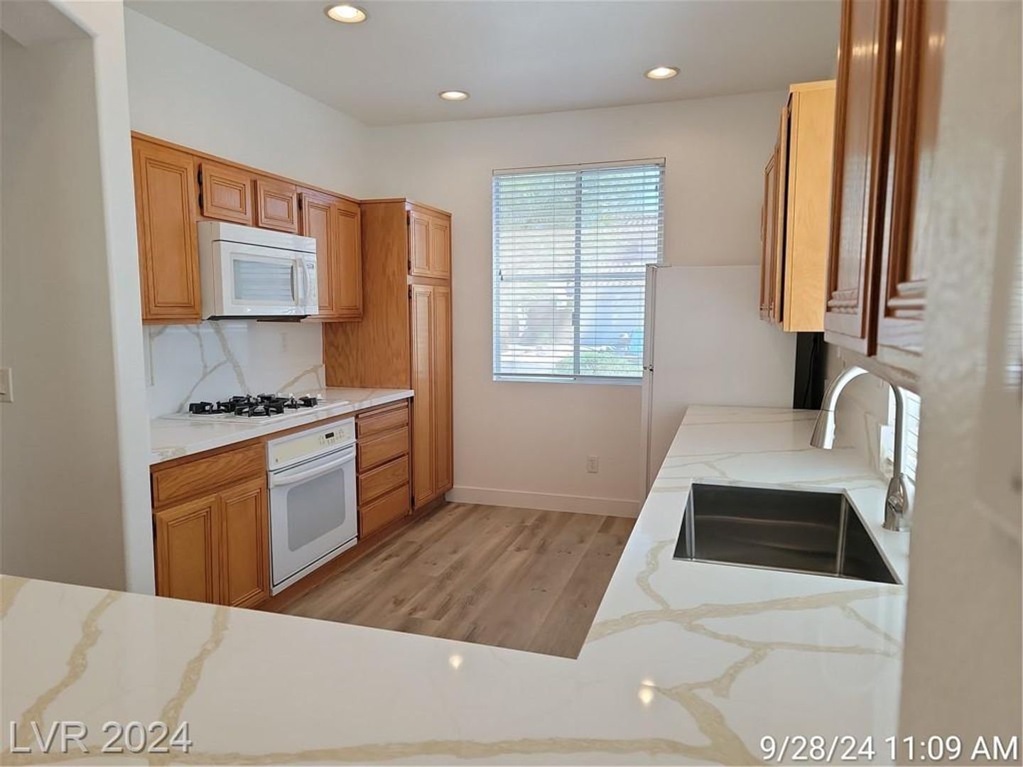 Charming single-story home minutes from shopping, entertainment, and freeway access. Features a spacious great room with fireplace, wood laminate flooring, and a kitchen with quartz counters and ample storage. The primary suite offers a walk-in closet, mirrored second closet, and en suite with double sinks and separate tub/shower. Low-maintenance backyard with covered patio.