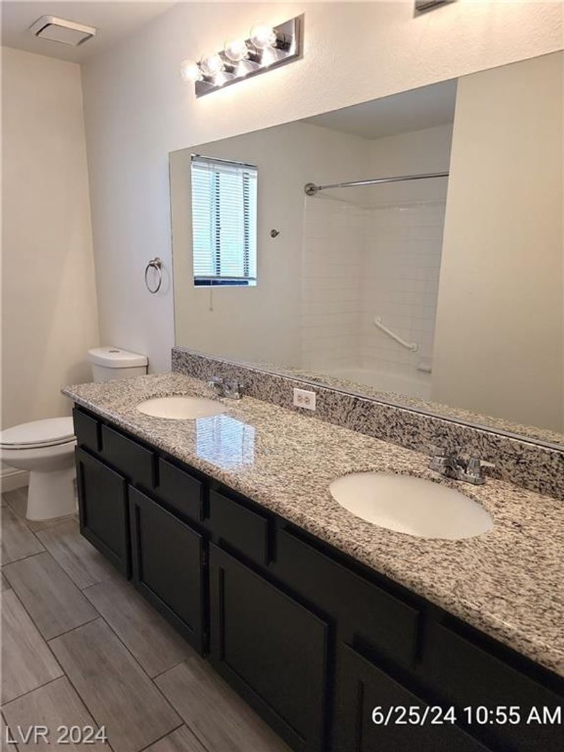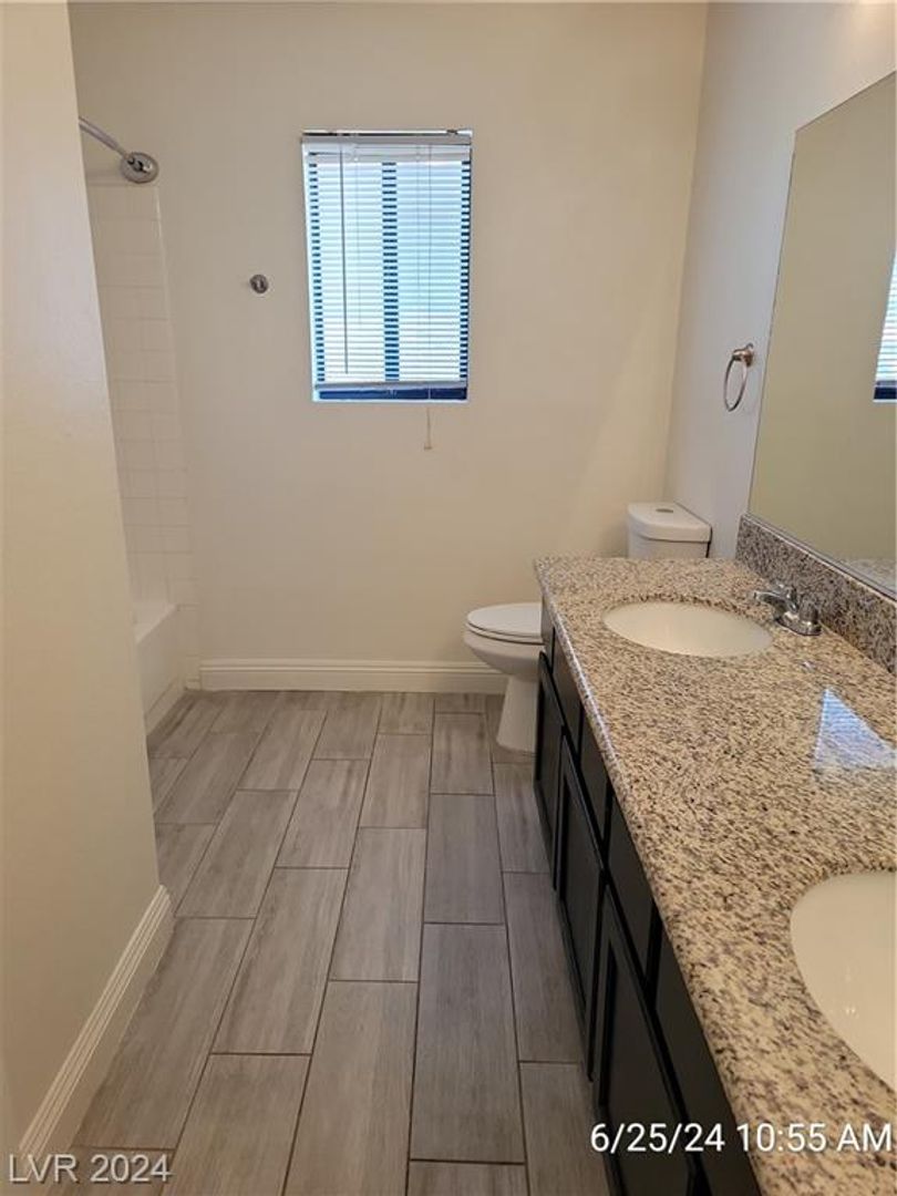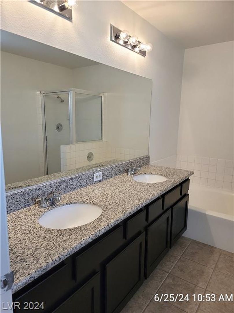 Located in the heart of Green Valley with a 3-car garage, this wonderful home features a bright, open floor plan with gorgeous plank tiles throughout the living areas. The property includes both formal and family areas and a nicely remodeled kitchen with rich tones, stainless steel appliances, and granite countertops. The huge primary bedroom has a walk-in closet, dual sinks, and a separate tub and shower. Ceiling fans are installed throughout the home. The low-maintenance yard includes a covered patio, and pets are considered. Trash service remains in the owner's name, with a $20 monthly fee for the resident.