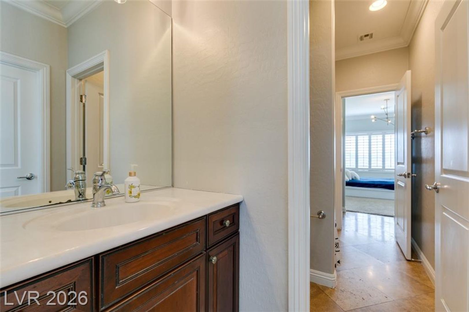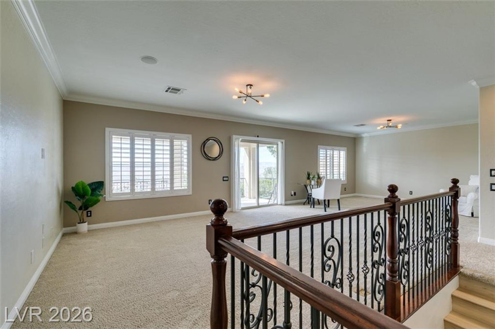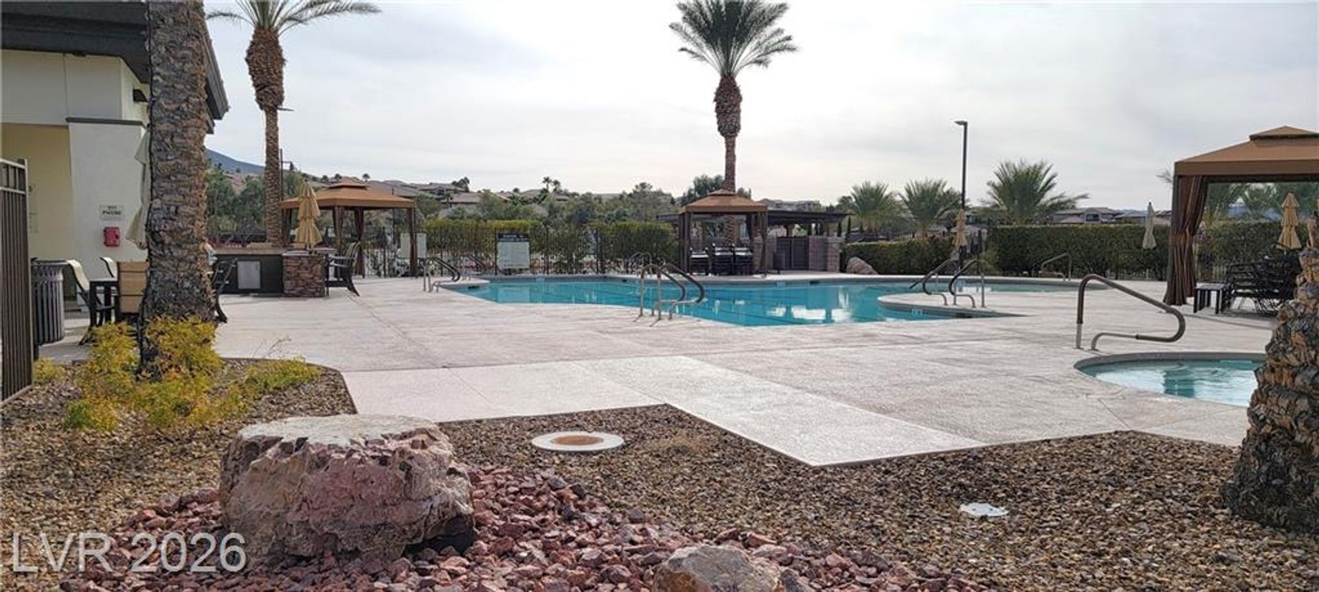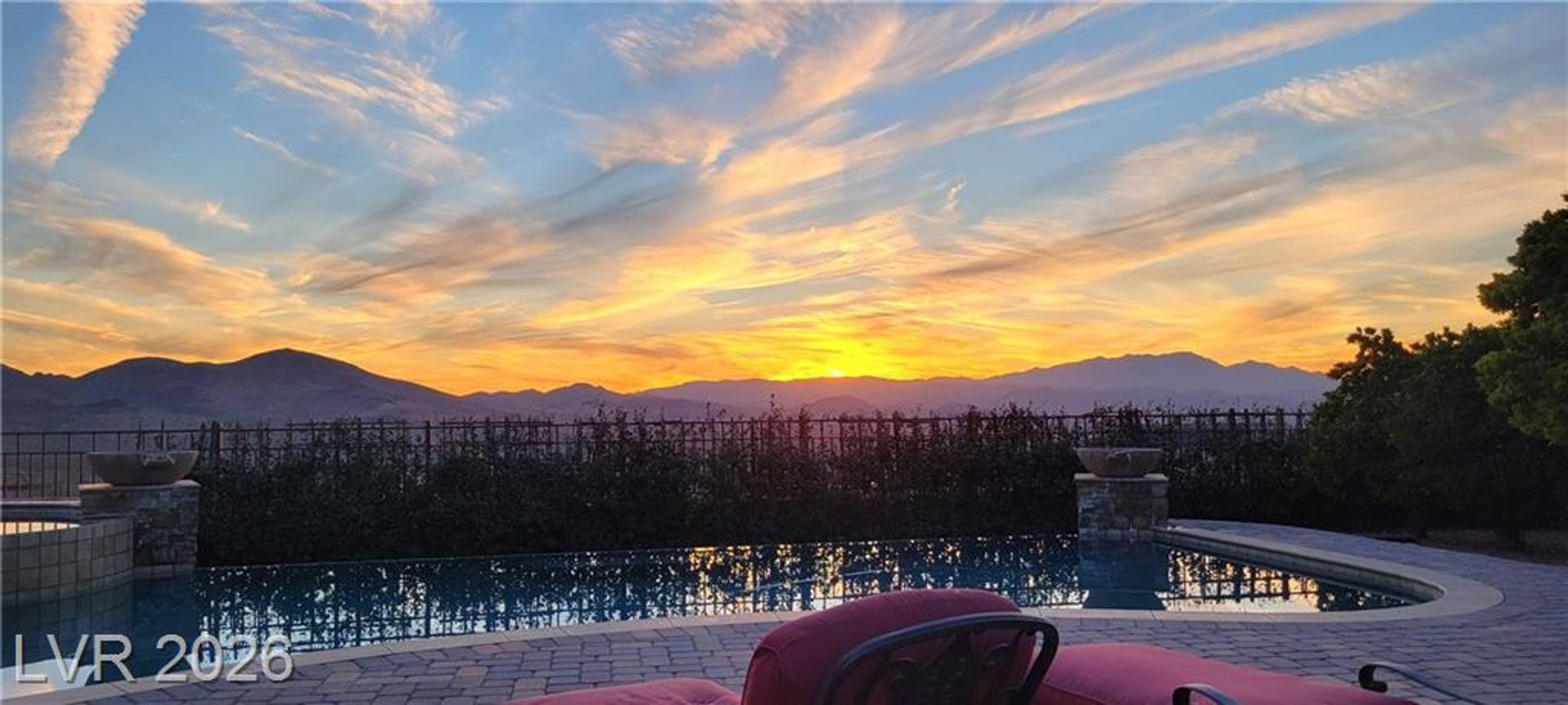 Tucked inside a guard-gated community w/resort-style amenities, this stunning home feels like a private retreat. Set on a coveted corner lot, it captures beautiful sunrises & sunsets over the mountains, creating a serene backdrop from morning to night. The home offers 5 bedrooms, w/ 1 downstairs + a spacious loft w/its own balcony. The primary suite features a private balcony w/ mountain views, perfect for quiet mornings or evenings. Inside, the home is warm & inviting w/ crown moulding, plantation shutters, elegant lighting & flexible living & family rooms. The kitchen features granite countertops, dark cabinetry, stainless steel appliances & a large island w/ breakfast bar. French doors open to a large Tuscan-inspired backyard oasis w/ a pool, spa, outdoor kitchen, 2 gas firepits & a wood-burning chimney, all framed by mountain views. Community amenities include a gym, lap pool, jacuzzi, kids’ club, pickleball/tennis courts & a basketball court, delivering a true resort lifestyle.