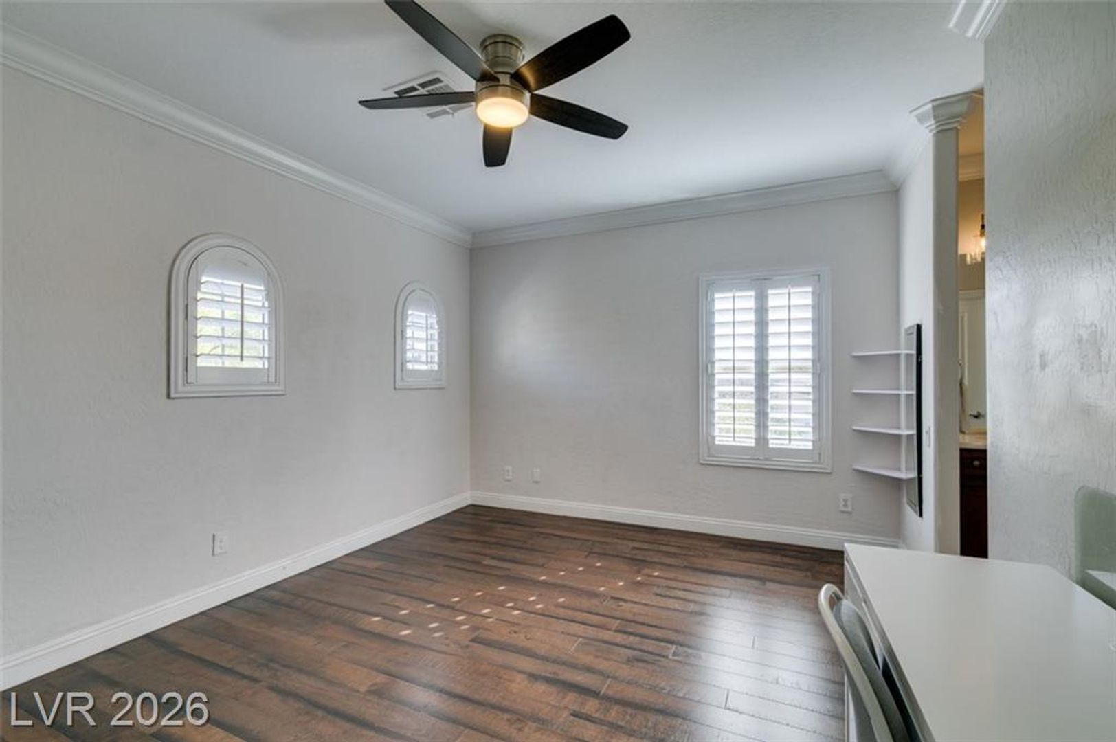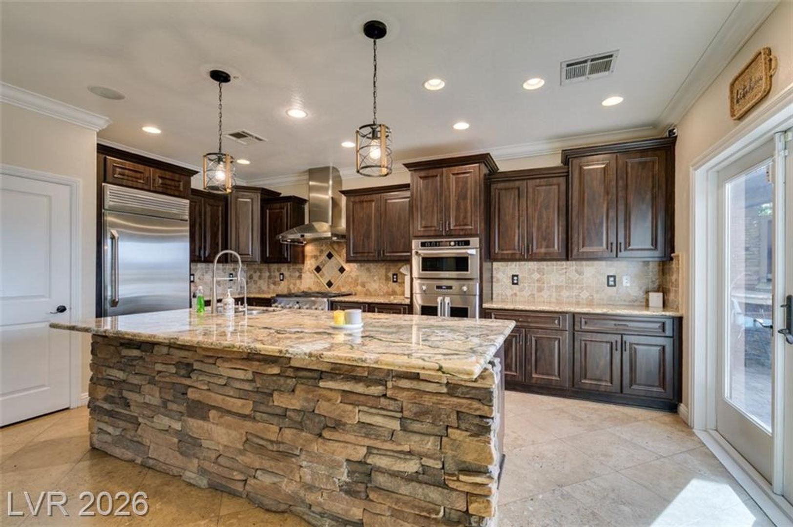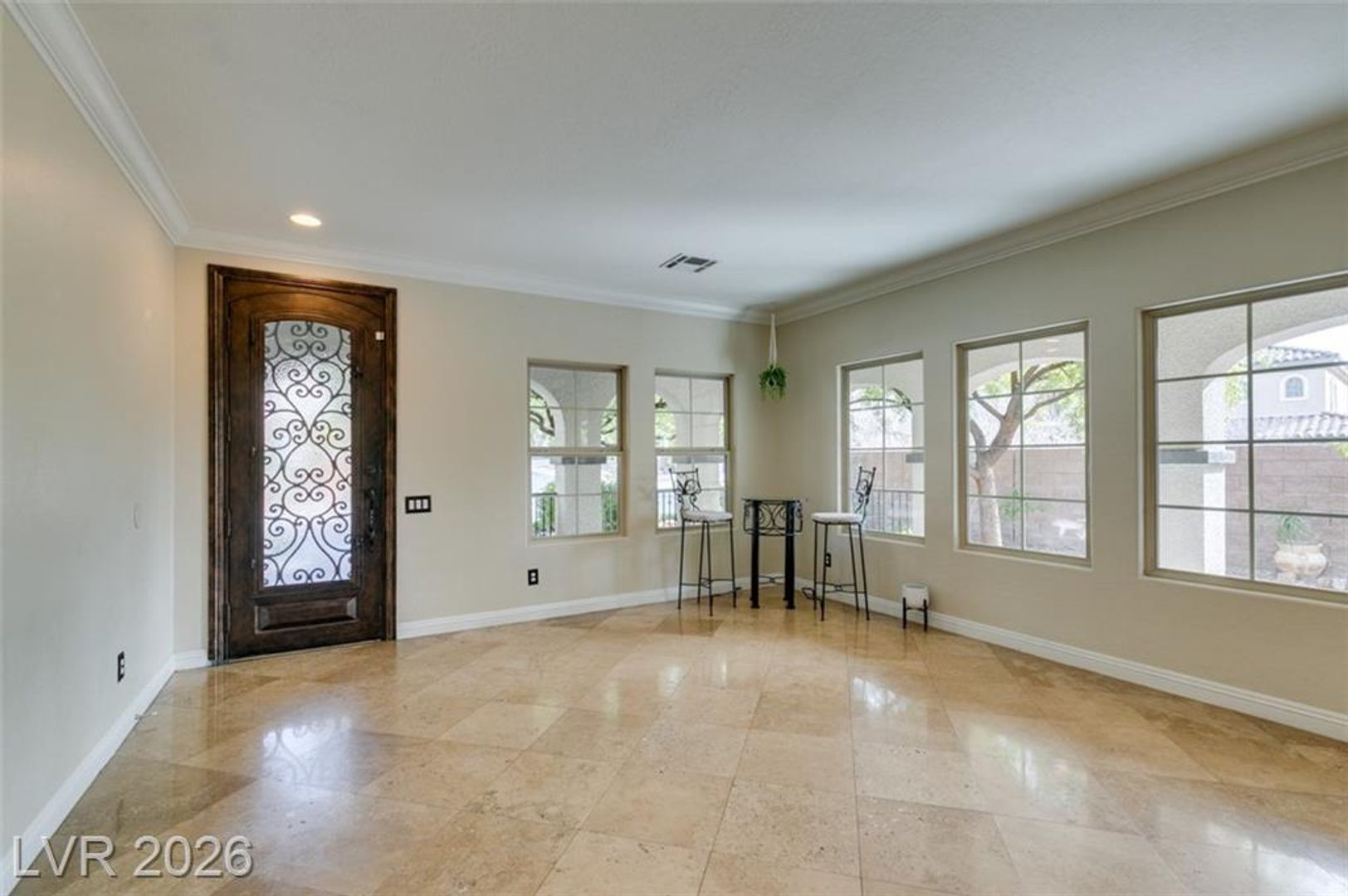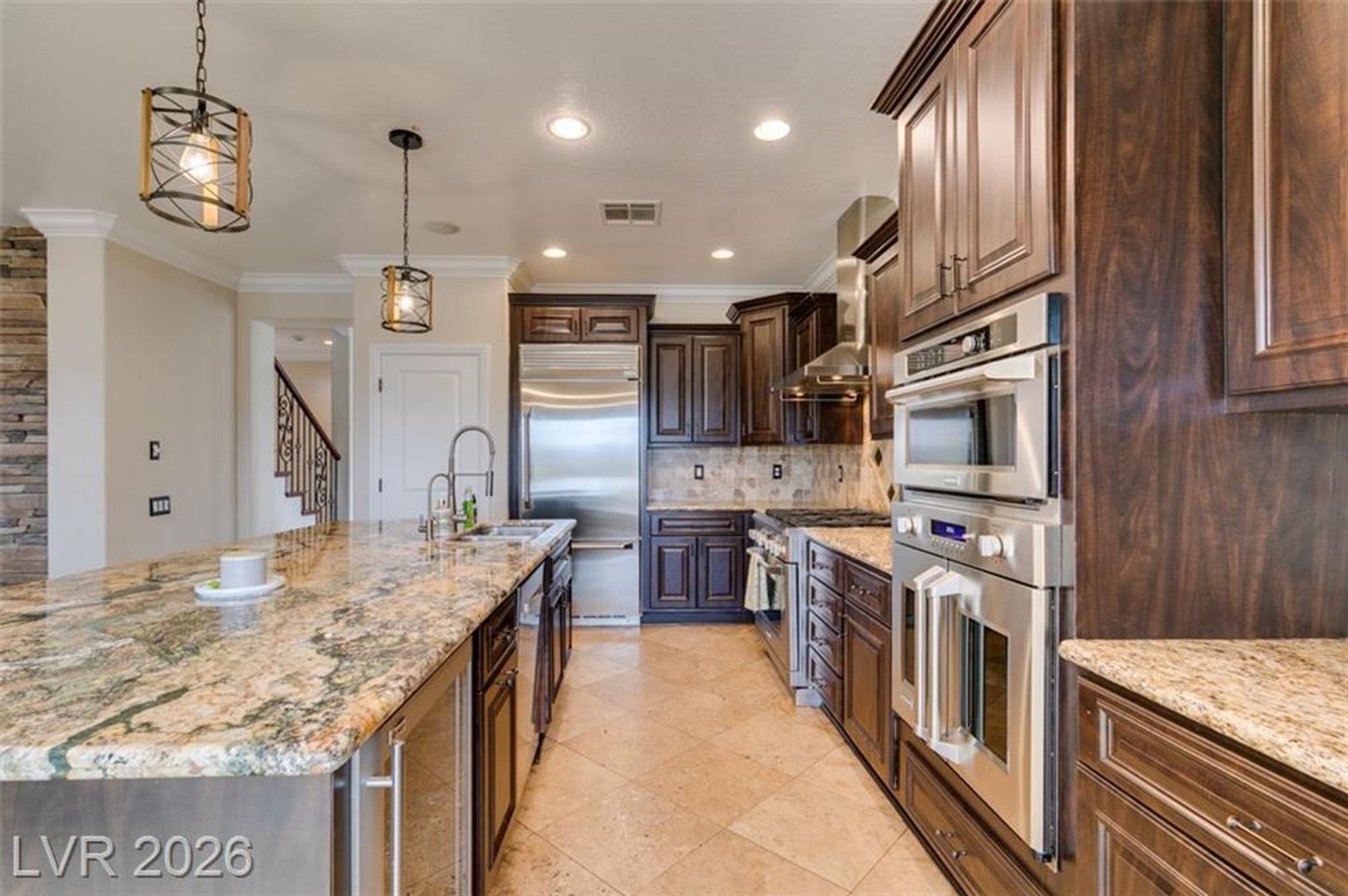 Tucked inside a guard-gated community w/resort-style amenities, this stunning home feels like a private retreat. Set on a coveted corner lot, it captures beautiful sunrises & sunsets over the mountains, creating a serene backdrop from morning to night. The home offers 5 bedrooms, w/ 1 downstairs + a spacious loft w/its own balcony. The primary suite features a private balcony w/ mountain views, perfect for quiet mornings or evenings. Inside, the home is warm & inviting w/ crown moulding, plantation shutters, elegant lighting & flexible living & family rooms. The kitchen features granite countertops, dark cabinetry, stainless steel appliances & a large island w/ breakfast bar. French doors open to a large Tuscan-inspired backyard oasis w/ a pool, spa, outdoor kitchen, 2 gas firepits & a wood-burning chimney, all framed by mountain views. Community amenities include a gym, lap pool, jacuzzi, kids’ club, pickleball/tennis courts & a basketball court, delivering a true resort lifestyle.
