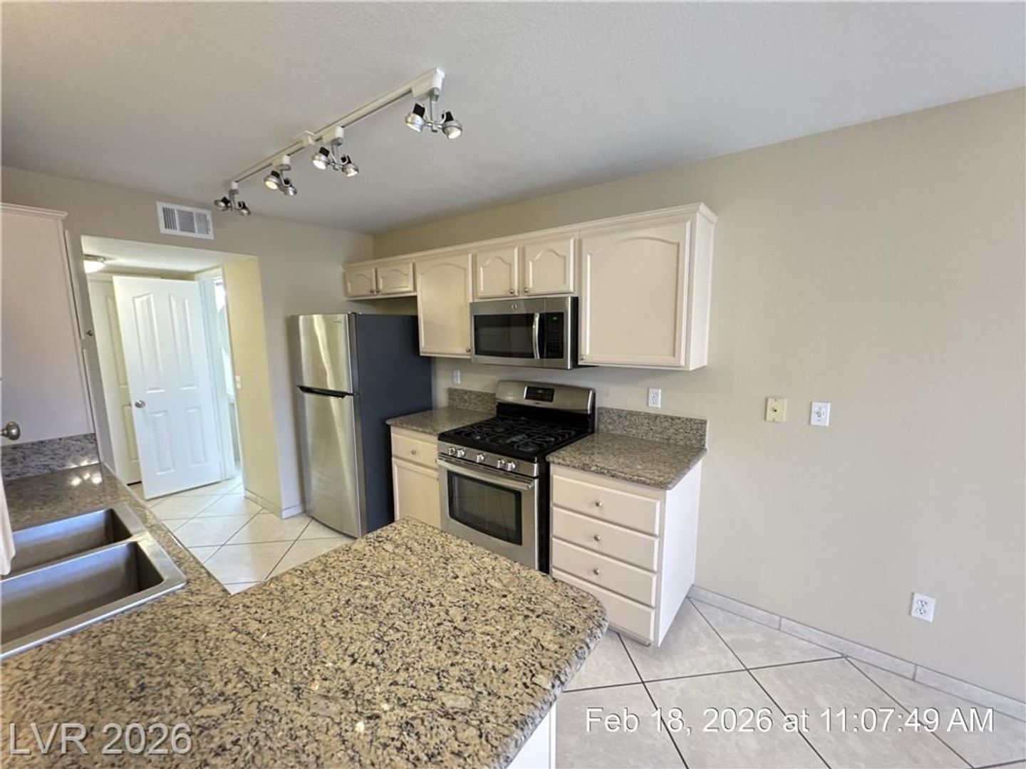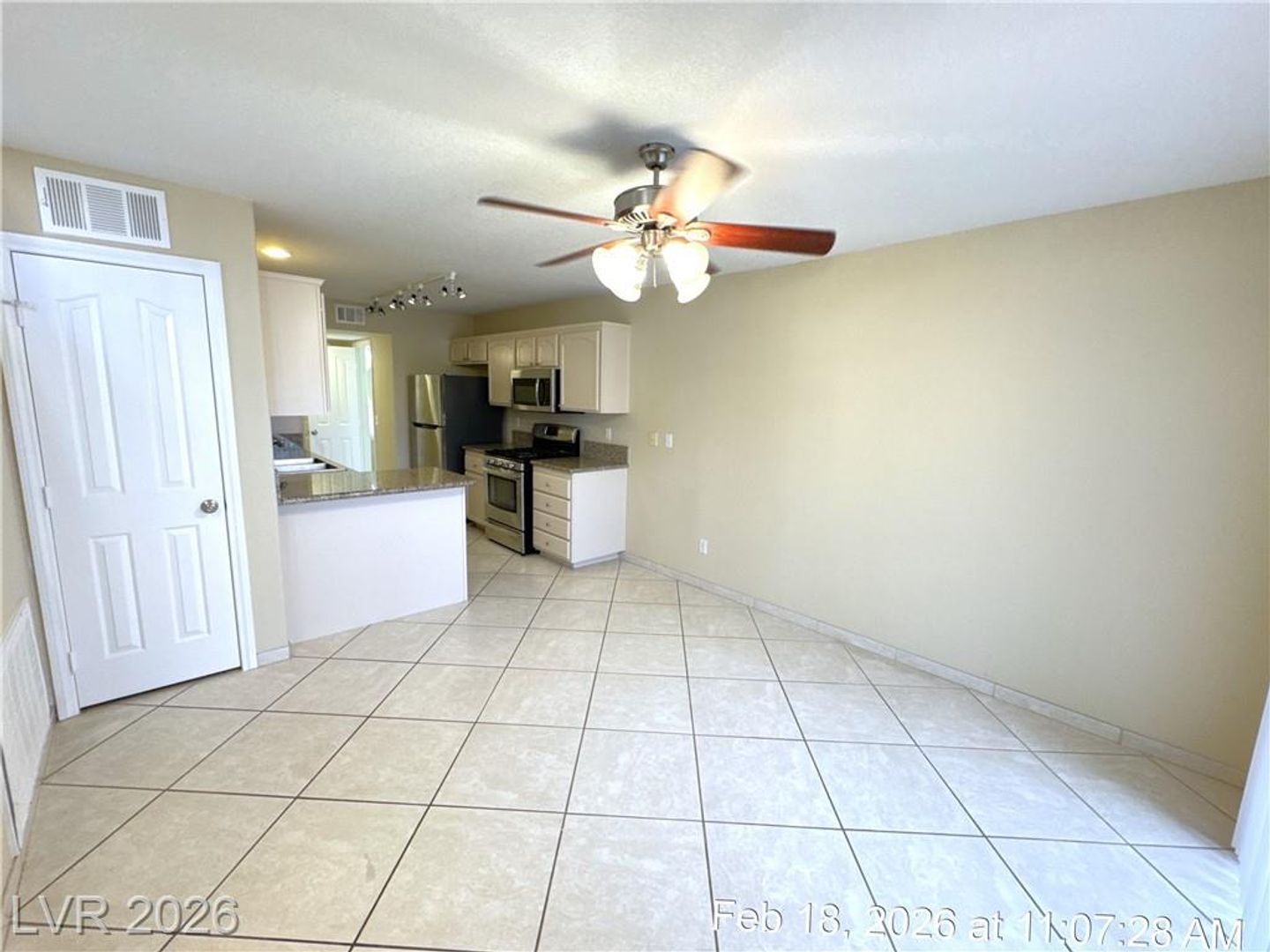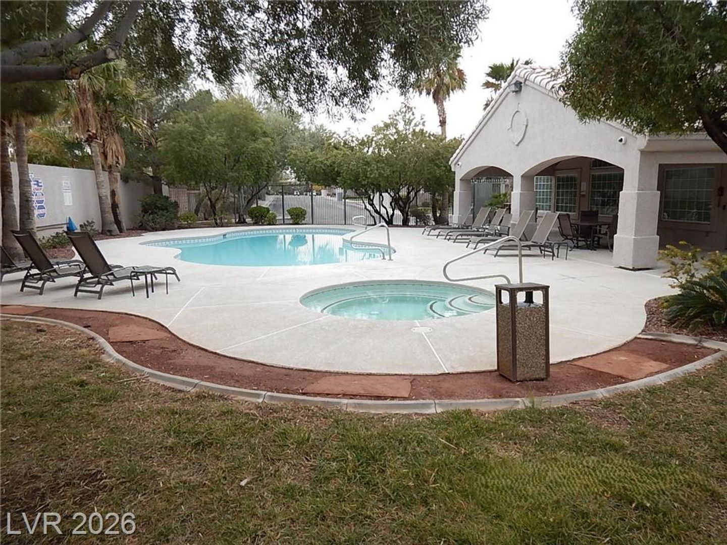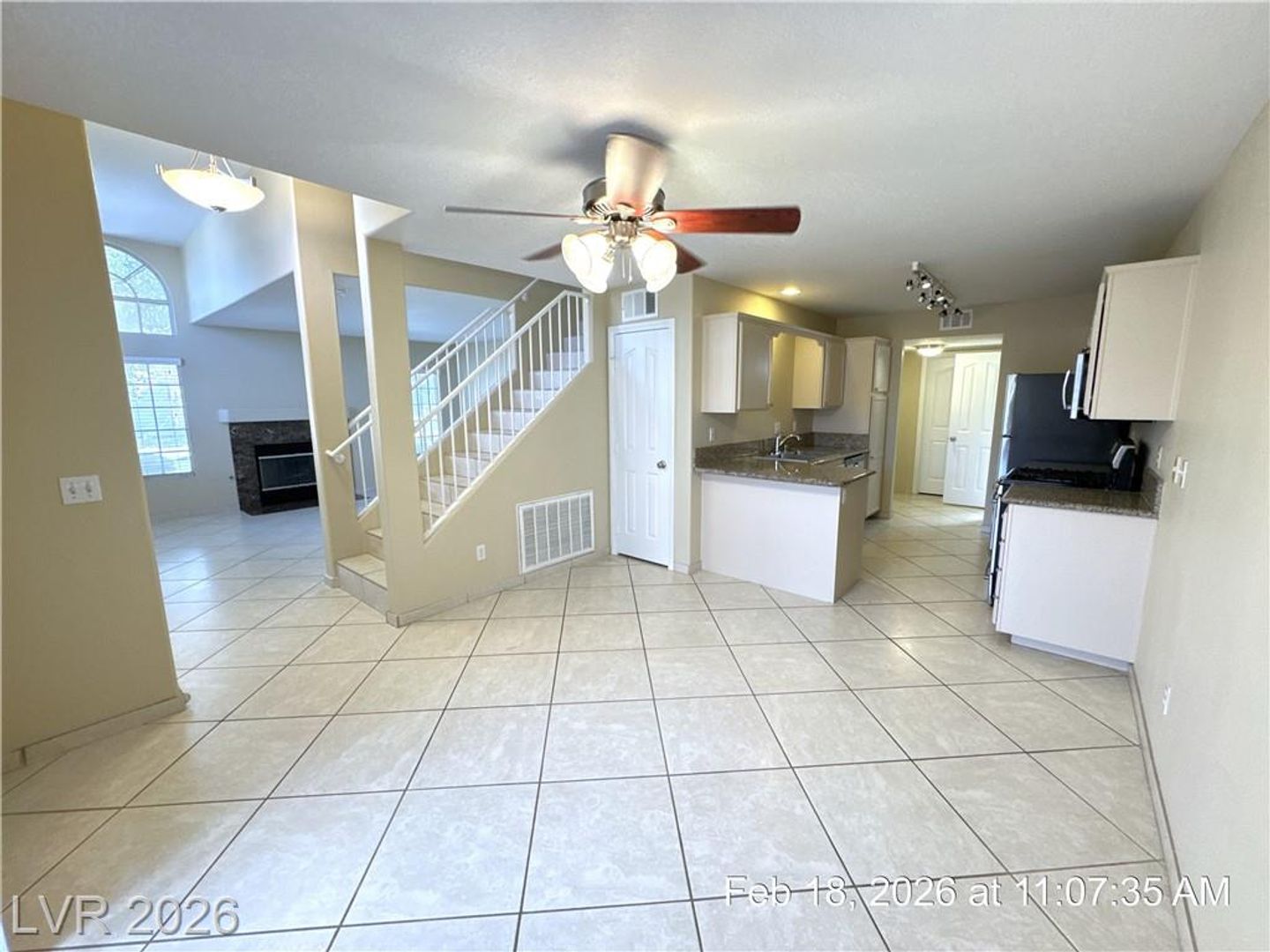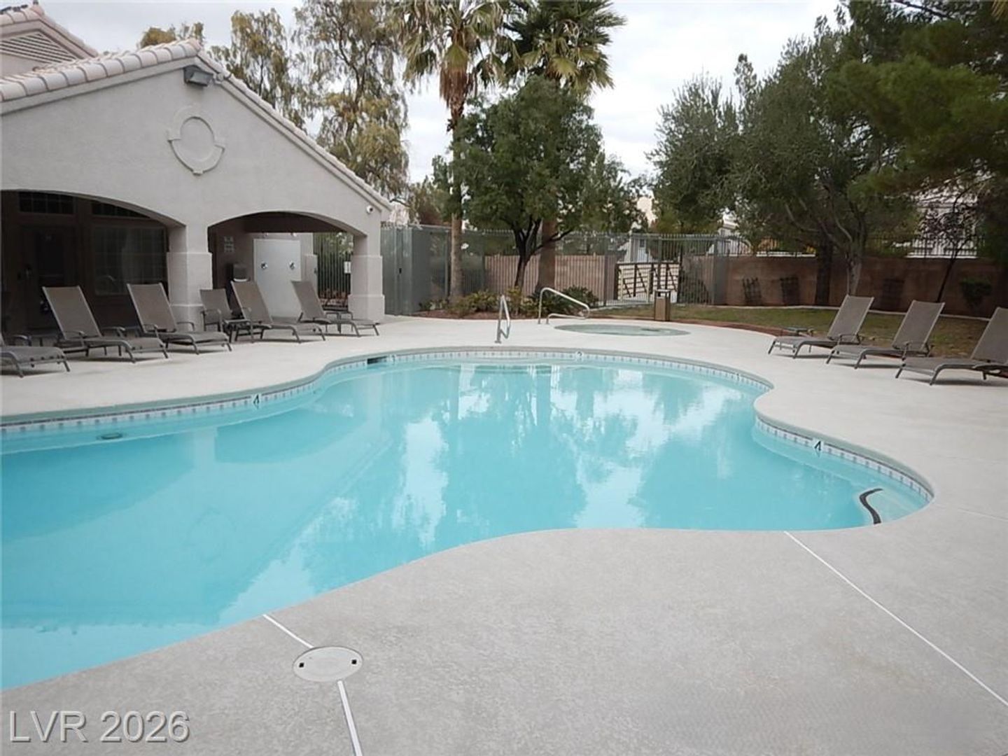 Outstanding Henderson townhome with tile flooring throughout—no carpet anywhere! This spacious three-bedroom home includes a two-car garage and a unique layout where the staircase stylishly separates the living room and dining area. The living room features a cozy fireplace, creating a warm and inviting space to relax. The upgraded kitchen offers granite countertops, stainless steel appliances, and plenty of room to cook and gather. The oversized primary bedroom includes a custom closet organizer for added convenience, while the secondary bedrooms are generously sized with great flexibility for guests, a home office, or hobbies. Community amenities include a pool, spa, and exercise room, plus a park right next door with tennis courts and a playground.