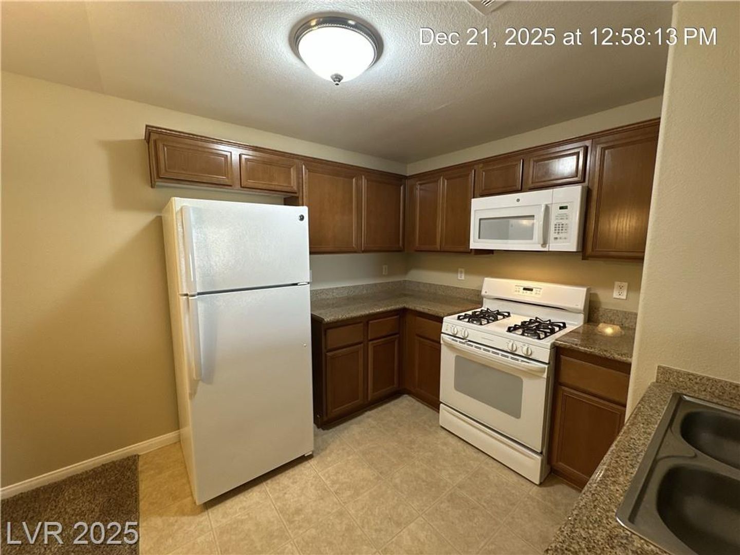Welcome home to this inviting second-floor Southwest unit with a comfortable, open layout that’s easy to love. The spacious living area flows into a dining space just off the kitchen, making everyday living and entertaining simple. The kitchen features granite countertops and white appliances with plenty of room to cook and gather. The large primary bedroom offers dual sinks, a walk-in shower, and two closet areas, including a walk-in, while the oversized second bedroom also includes a walk-in closet for extra storage. Enjoy a community designed for an active lifestyle with resort-style amenities including a sparkling pool, relaxing spa, fully equipped fitness center, recreation room, and scenic jogging trails—perfect for unwinding or staying active close to home.