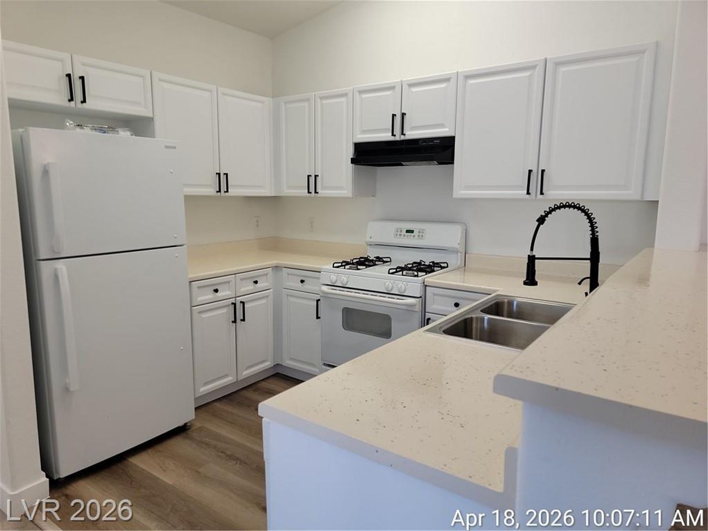 FANTASTIC SOUTHWEST TOWNHOME IN A GATED COMMUNITY! This highly sought-after floorplan offers stylish luxury plank flooring throughout the main living areas with cozy carpet in the bedrooms. The spacious living room flows into a separate dining area, creating a comfortable and functional layout. The open kitchen features a breakfast counter, crisp white cabinetry, and all appliances included. The large primary bedroom boasts a walk-in closet and a tub/shower combo, while the oversized secondary bedroom—situated on the opposite side—adds ideal privacy for roommates or guests. Enjoy the convenience of an attached one-car garage plus plenty of open parking. Community amenities include a pool, park, and outdoor fitness area. CATS ONLY, no dogs.
