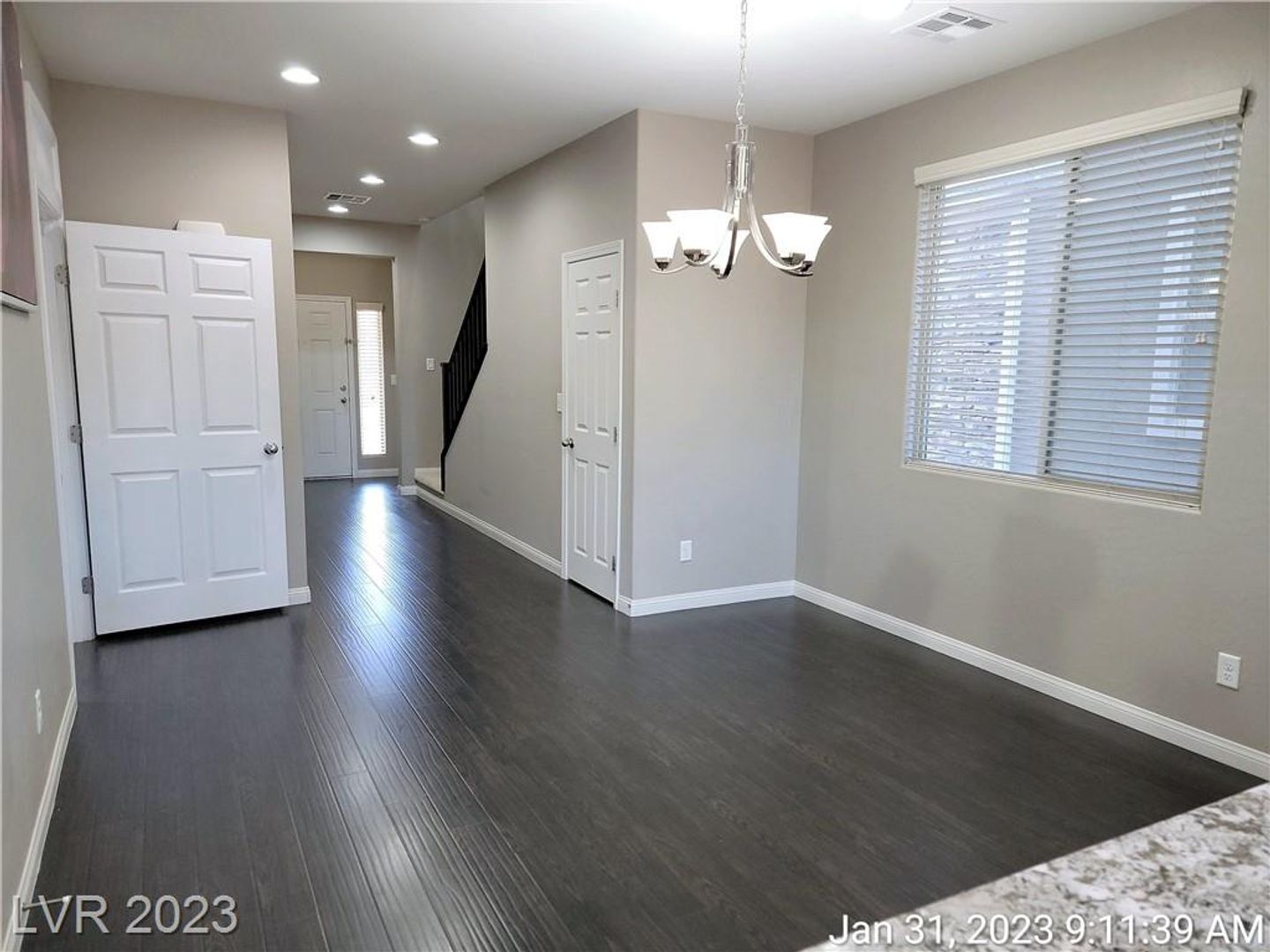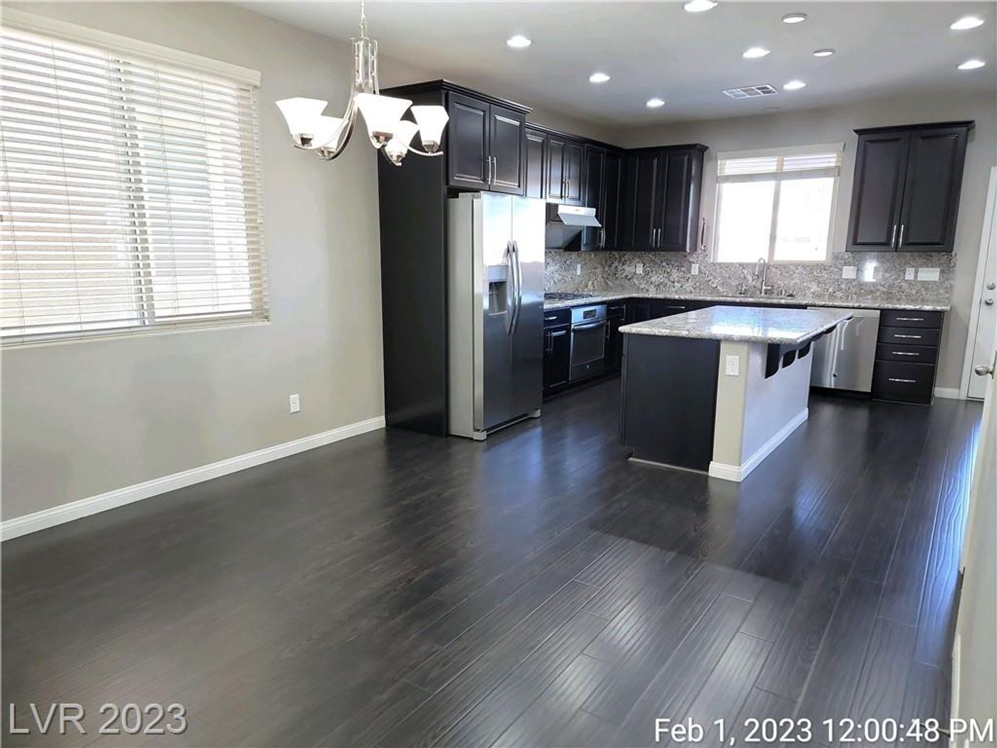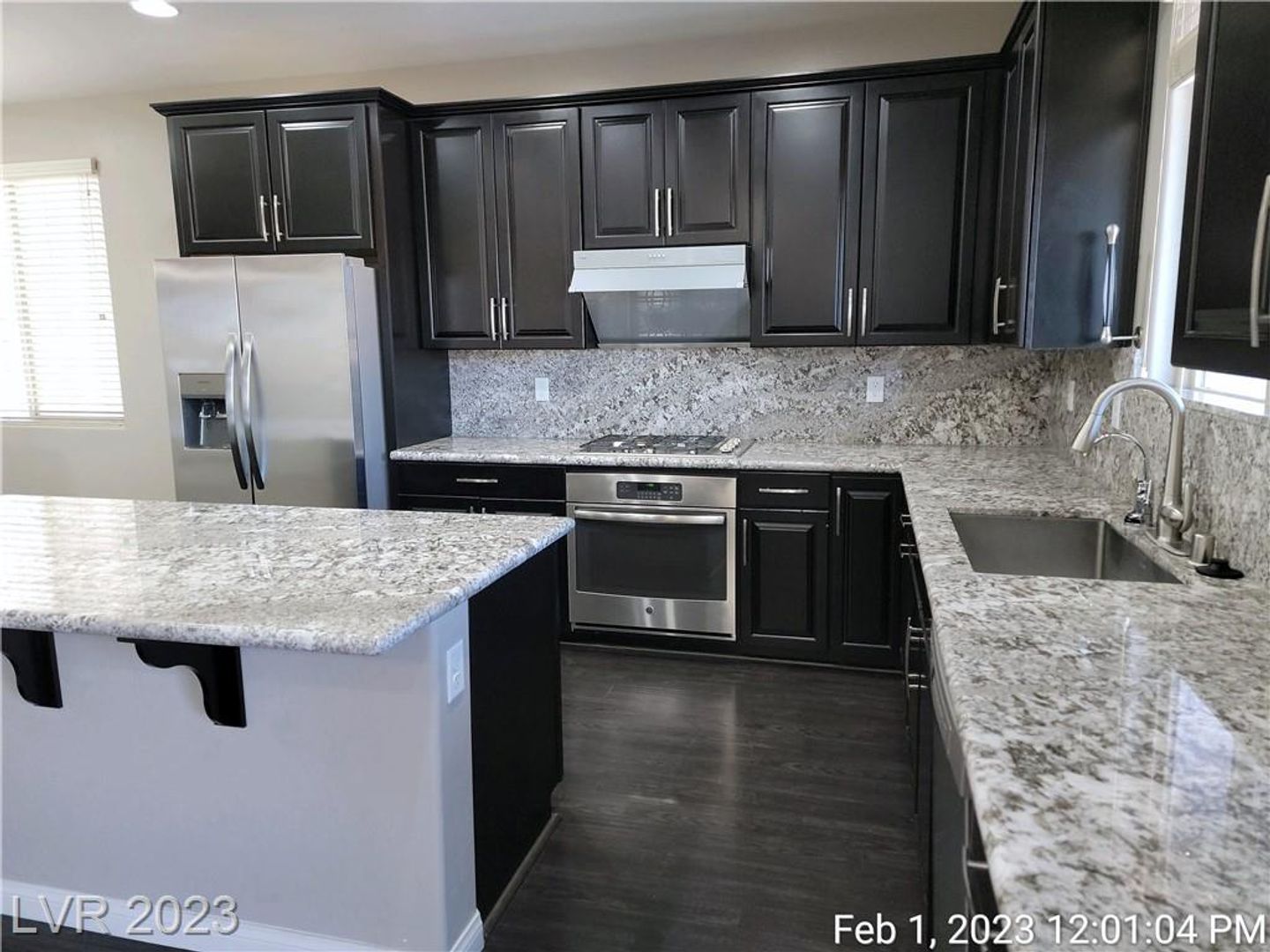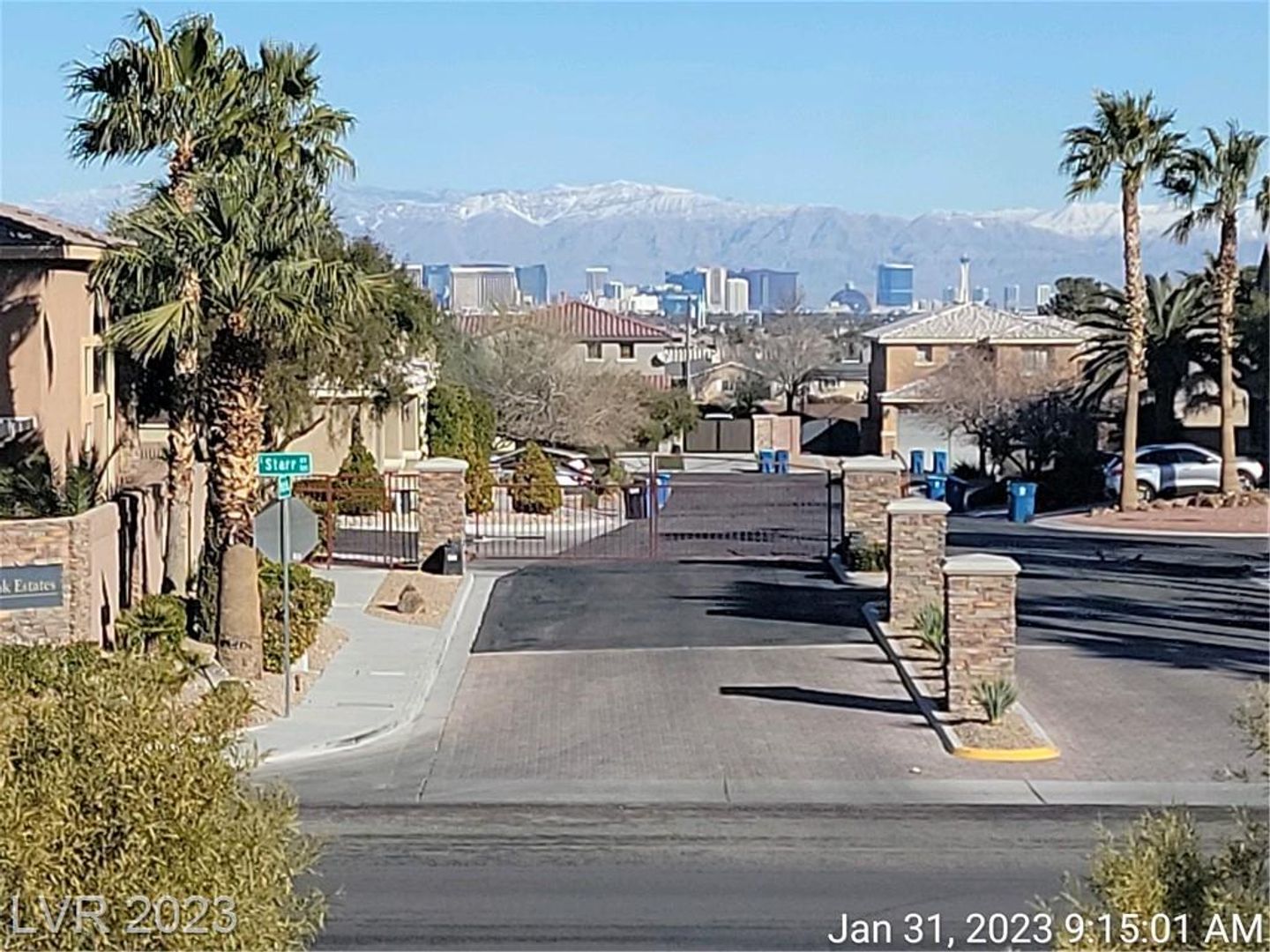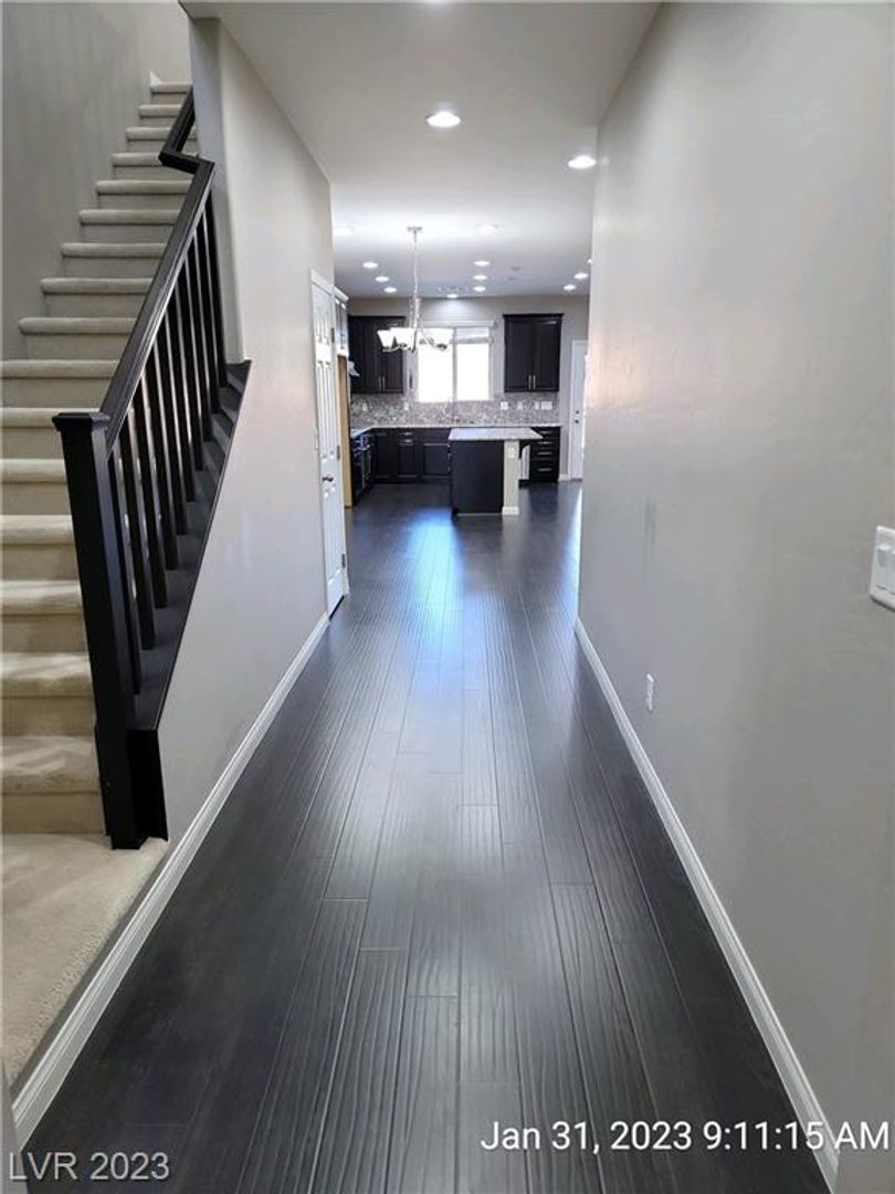 STUNNING VIEWS OF STRIP, CITY & MOUNTAINS--MINUTES FROM "M" CASINO & STRIP!! Great home features open & spacious great room with wood laminate flooring throughout first floor. Upgraded kitchen with island, granite counters & all stainless appliances. Large primary bedroom with walk-in closet & perfect views of the strip & mountains. Nicely upgraded bath with double sinks & separate tub/shower. Bed & full bath downstairs. Low maintenance backyard with patio & synthetic grass. Refrigerator & washer/dryer being installed.
