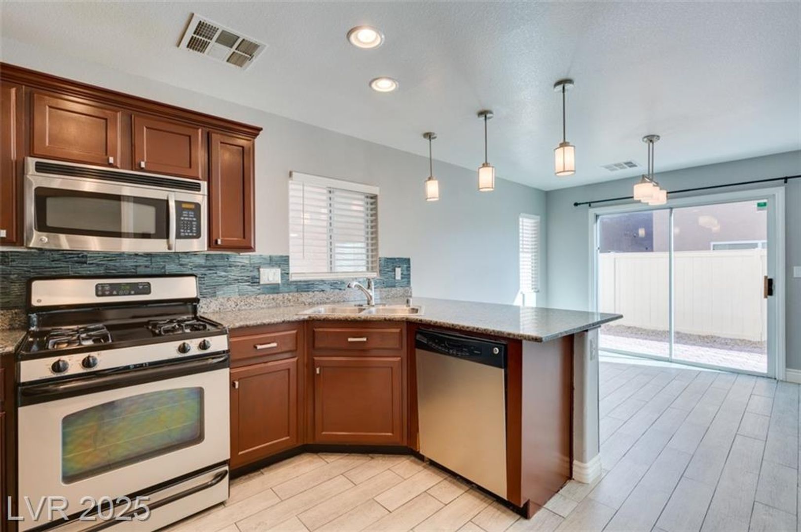 Welcome to this beautiful 3-bedroom, 2½-bath home in a sought-after Northwest community, featuring an open, bright layout perfect for everyday living. The first floor showcases plank flooring that adds a modern, inviting touch, while the spacious great room is ideal for relaxing or entertaining. The upgraded kitchen boasts granite countertops and stainless steel appliances, creating a stylish space to cook and gather. Upstairs, a cozy loft adds extra living space, and the primary suite offers a walk-in closet, double sinks, and a tub/shower combo. All bedrooms have walk-in closets, with the third bedroom providing private access to the second bath. Ceiling fans throughout enhance comfort, and the low-maintenance desert landscaping makes outdoor upkeep a breeze. Small pet considered. Base rent $1913 + $37 RBP.
