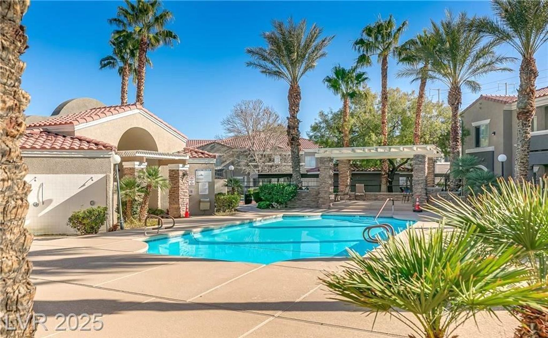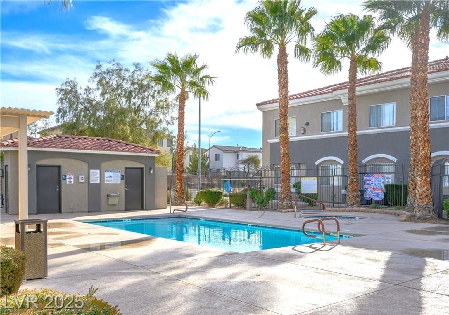 This floorplan is ideal for roommates or anyone wanting extra privacy, with each bedroom positioned on opposite sides of the home. The open living and dining area provides a comfortable space to relax or entertain, and the kitchen offers plenty of counter space and storage, with all appliances included to make move-in easy. Each primary bedroom has direct bathroom access, and the main suite includes a garden tub/shower combo. Enjoy the convenience of an in-unit washer and dryer, plus access to community amenities including a refreshing pool for those warm Vegas days. Located just minutes from shopping, dining, grocery stores, and easy freeway access for quick commuting. One small pet may be considered upon approval.