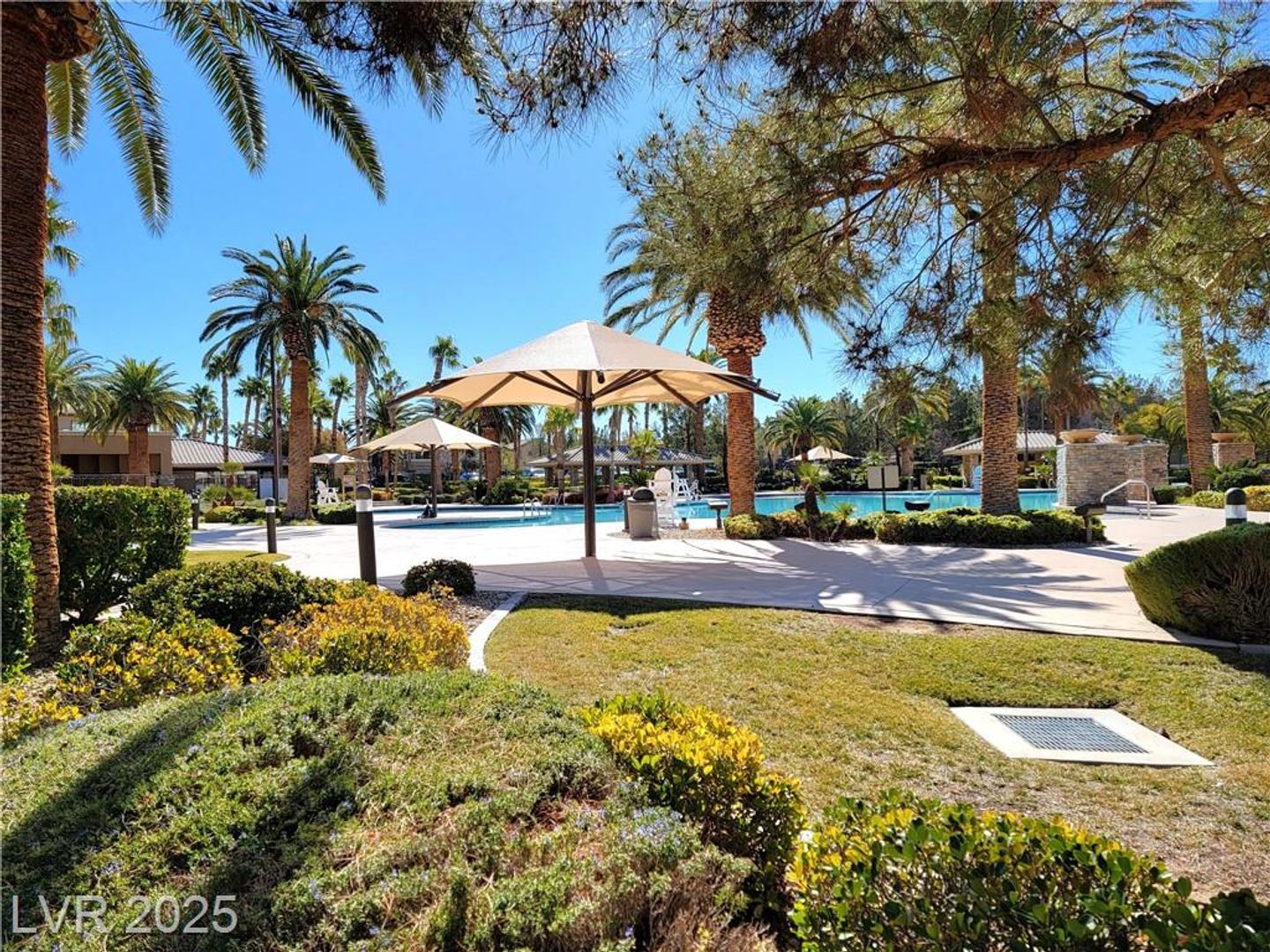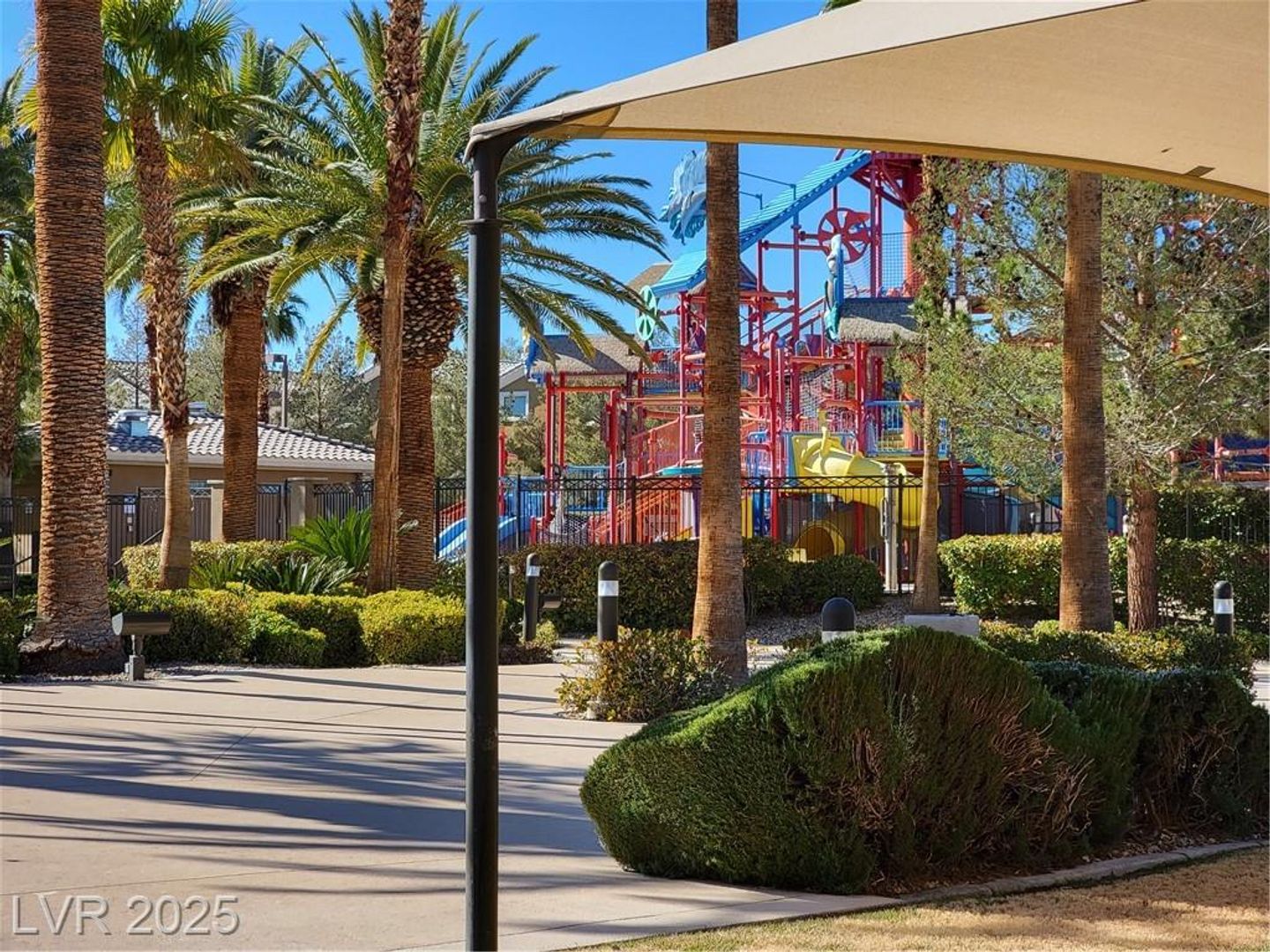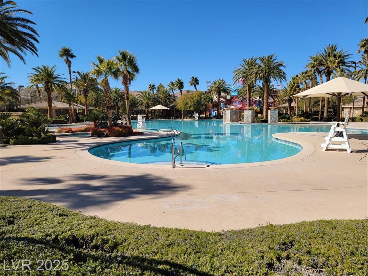 LINKS @ RHODES RANCH – Enjoy resort-style living in this highly desirable guard-gated golf community! This inviting 3-bedroom, 2.5-bath home offers an open and functional layout perfect for modern living. The spacious great room features a separate dining area and media niche, ideal for entertaining or cozy nights in. The kitchen boasts granite counters, a center island, and ample cabinet space. Upstairs, the oversized primary suite includes a huge walk-in closet, dual sinks, and a separate tub and shower. Secondary bedrooms are comfortably sized. The backyard is fully landscaped and low maintenance, offering a perfect spot to relax. Residents at Rhodes Ranch enjoy incredible amenities including a state-of-the-art fitness center, resort-style pool with water slides, golf course, clubhouse, basketball courts, and walking trails—all within a beautifully maintained, guard-gated community.