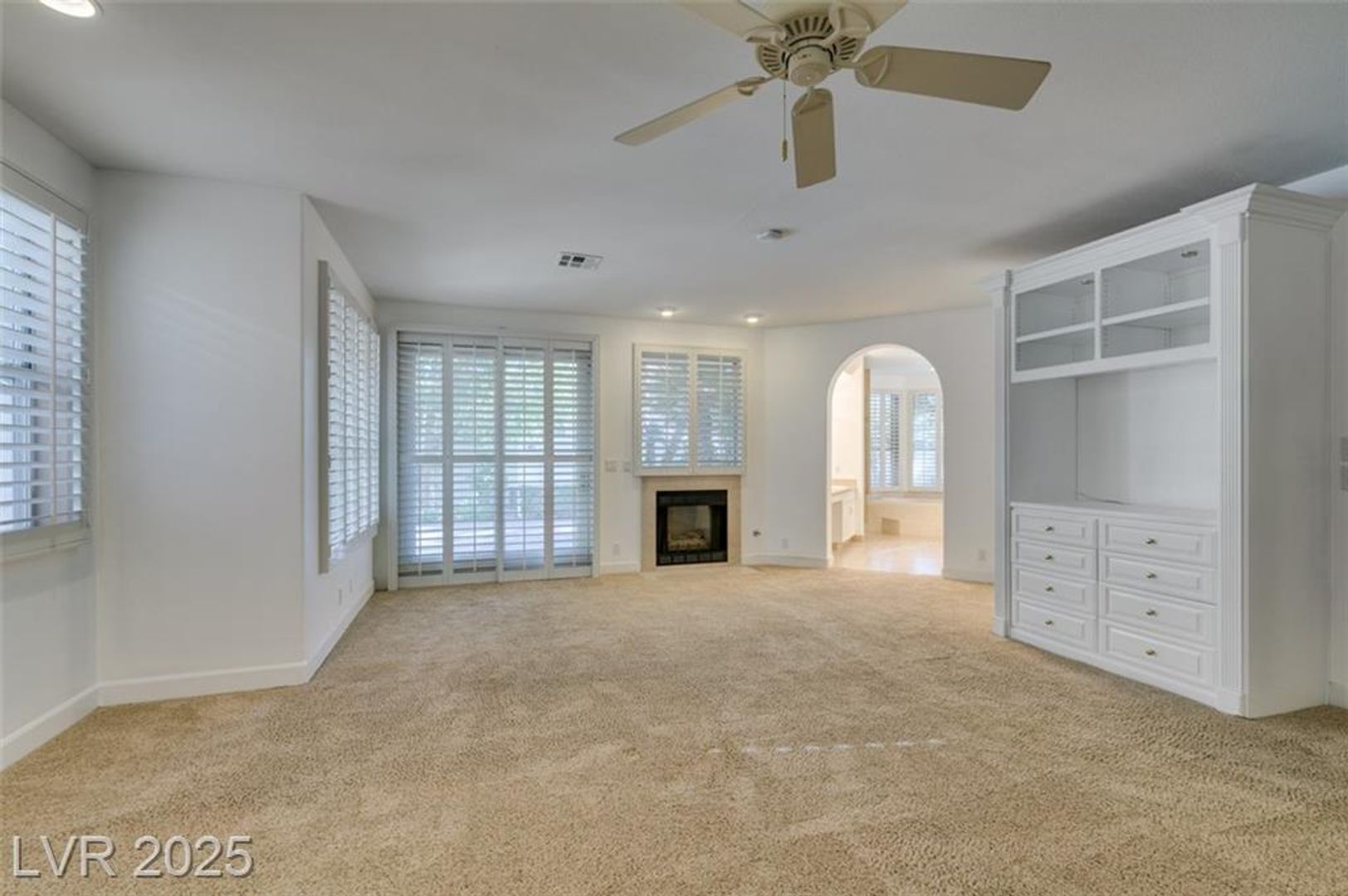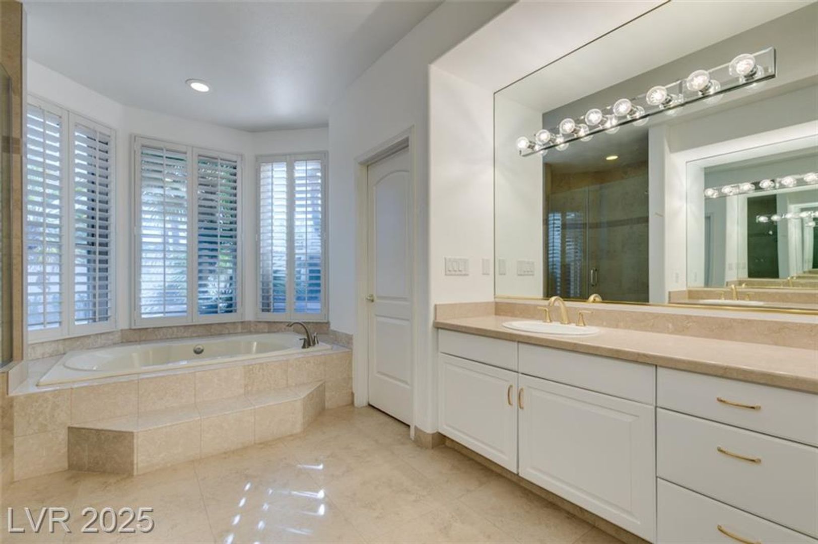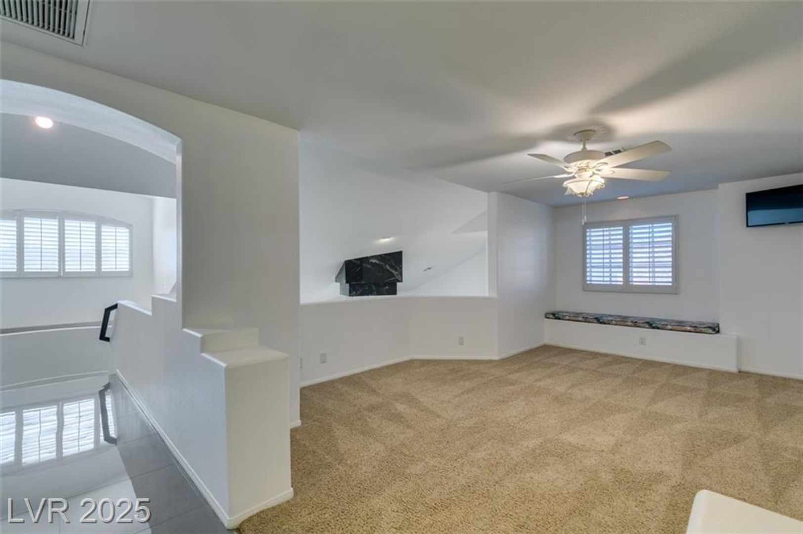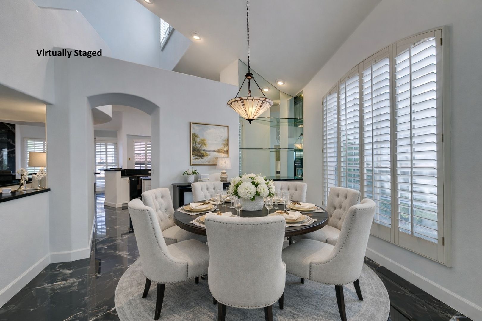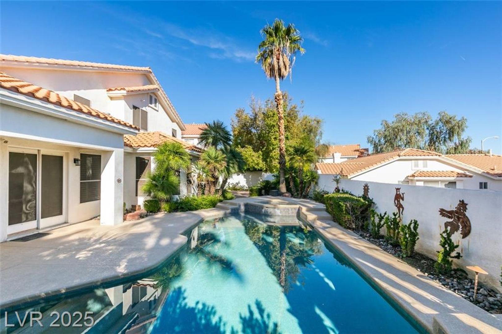 Welcome to Vintage, an exclusive Green Valley enclave where every detail feels elevated and inviting. Step inside to soaring vaulted ceilings and a striking formal living and dining area centered around a warm fireplace. The kitchen shines with granite counters, tile flooring, built-in ovens, and a cooktop island ideal for lively hosting. The family room becomes your entertainment hub with a spacious seated bar and sink, a cozy fireplace, and custom built ins. The expansive downstairs primary suite delivers true luxury with its own fireplace and private access to a lush backyard oasis. Outside, enjoy the pool and spa with a relaxing Baja shelf, surrounded by manicured landscaping, shaded seating areas, and plenty of space for outdoor dining or entertaining. Upstairs, a versatile loft joins three bedrooms: one with its own full bath and the other two sharing a well-appointed Jack-and-Jill bathroom, offering comfort and flexibility for everyone.