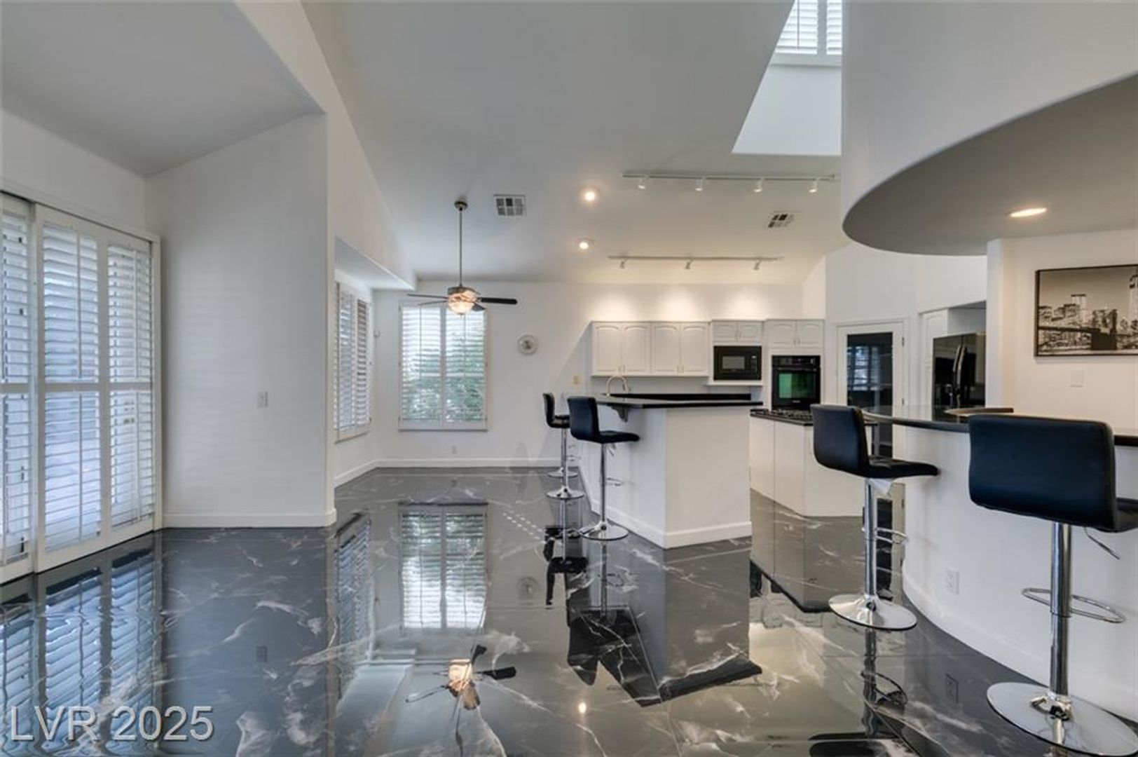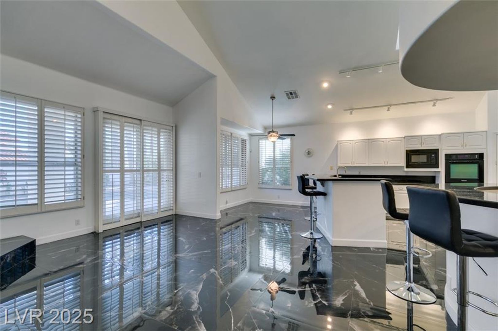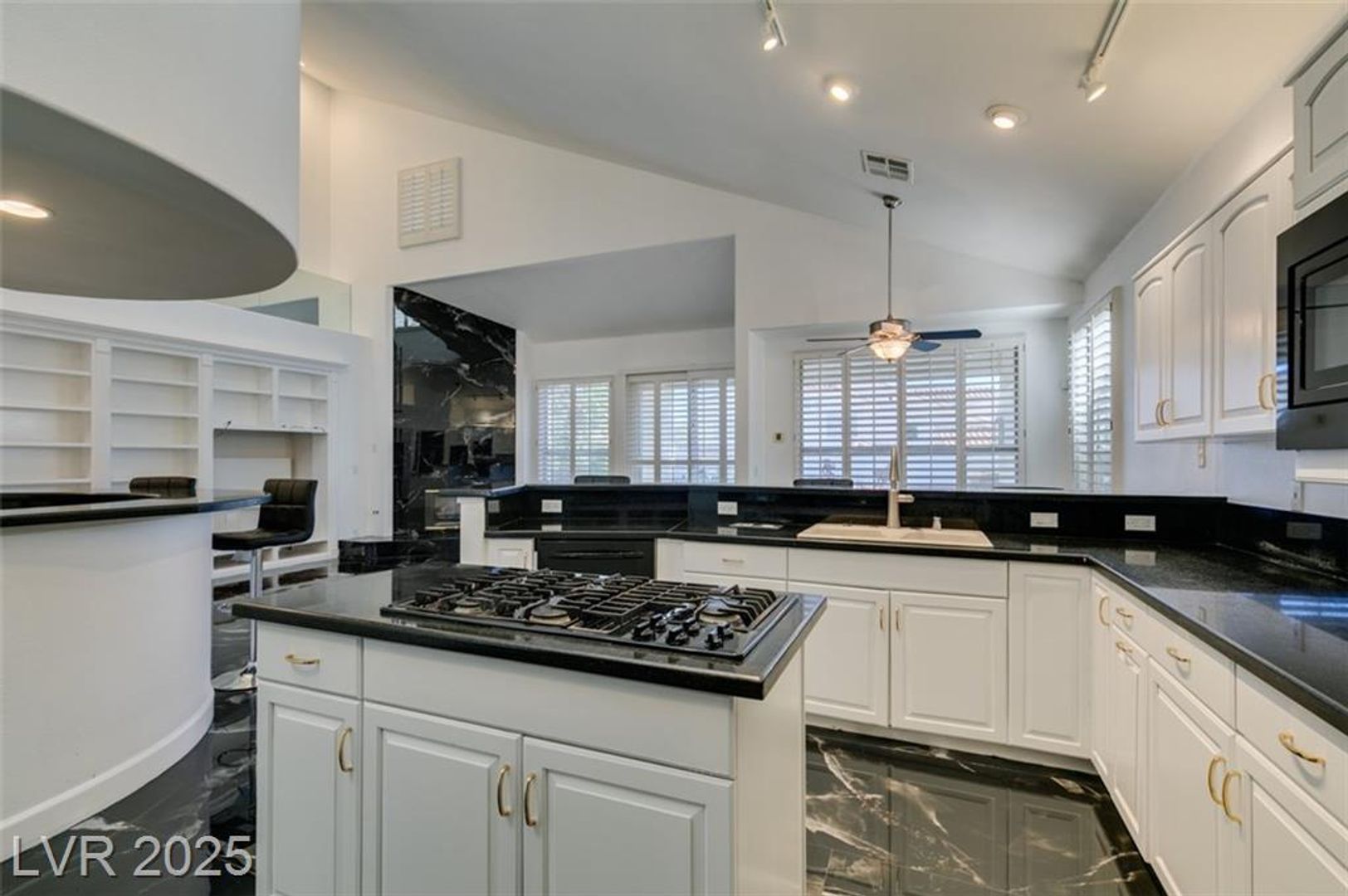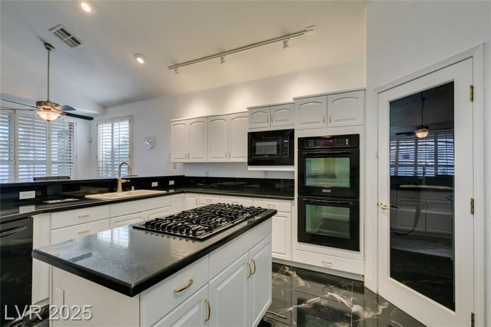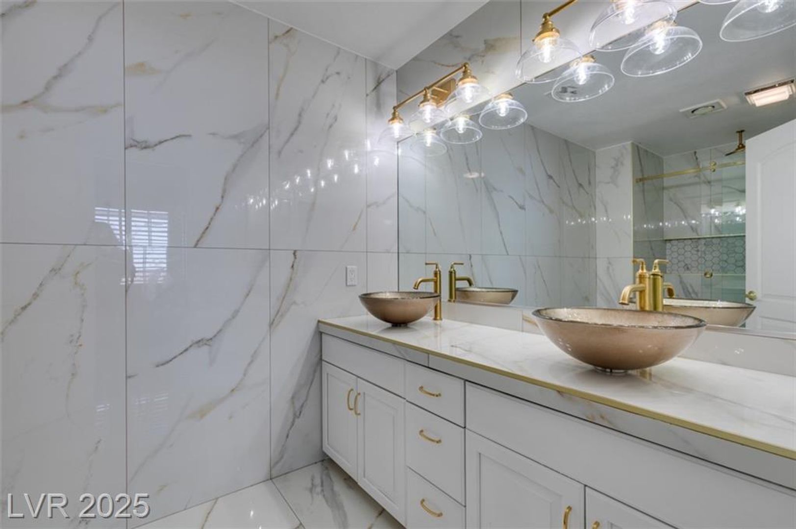 Welcome to Vintage, an exclusive Green Valley enclave where every detail feels elevated and inviting. Step inside to soaring vaulted ceilings and a striking formal living and dining area centered around a warm fireplace. The kitchen shines with granite counters, tile flooring, built-in ovens, and a cooktop island ideal for lively hosting. The family room becomes your entertainment hub with a spacious seated bar and sink, a cozy fireplace, and custom built ins. The expansive downstairs primary suite delivers true luxury with its own fireplace and private access to a lush backyard oasis. Outside, enjoy the pool and spa with a relaxing Baja shelf, surrounded by manicured landscaping, shaded seating areas, and plenty of space for outdoor dining or entertaining. Upstairs, a versatile loft joins three bedrooms: one with its own full bath and the other two sharing a well-appointed Jack-and-Jill bathroom, offering comfort and flexibility for everyone.