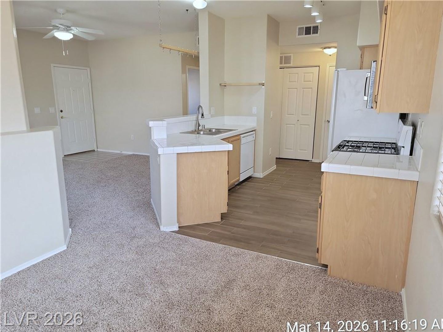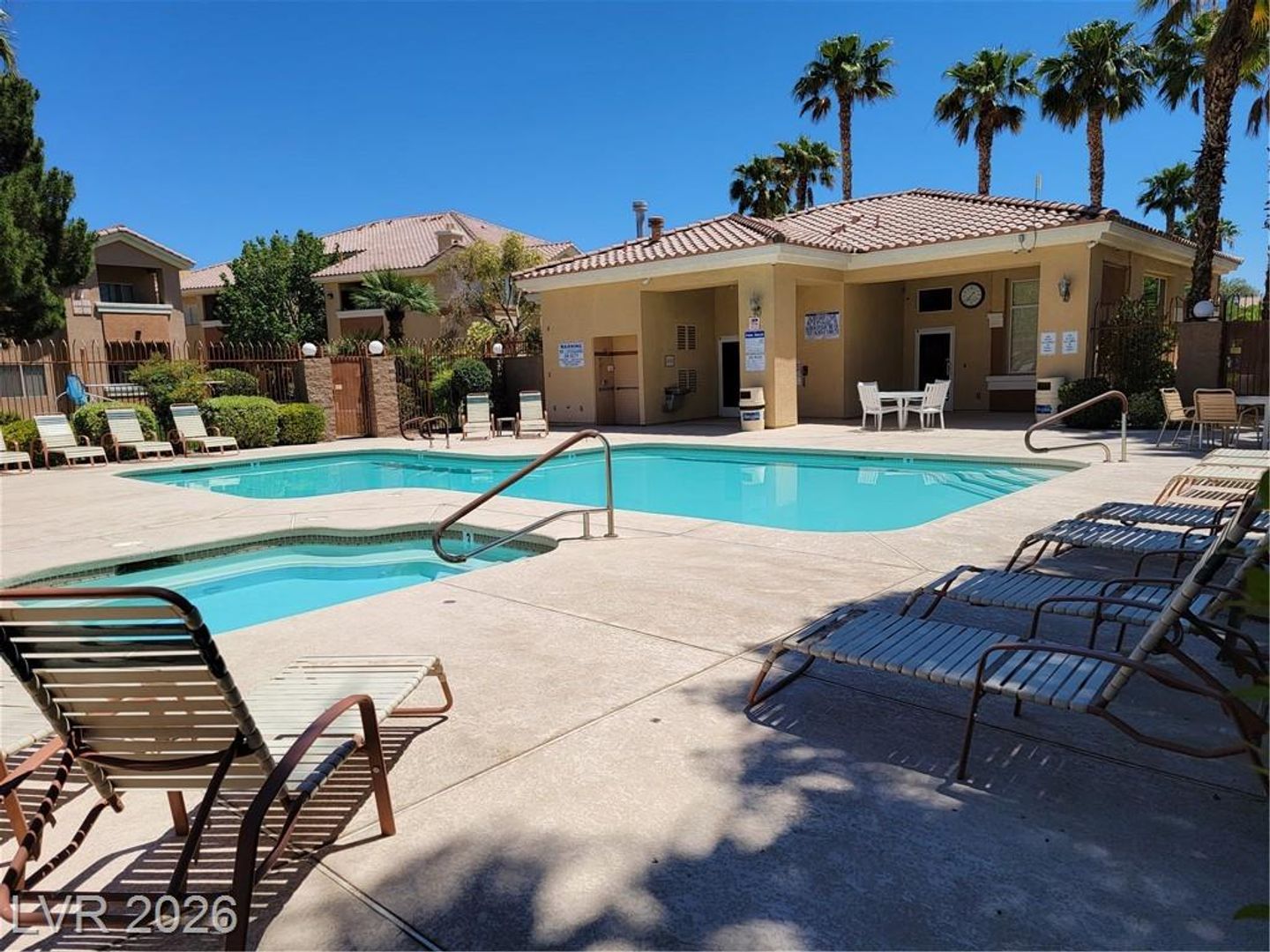 Check out this great second-floor two-bedroom unit in the desirable Silverado Ranch area. Located in a gated community with a gym, two sparkling pools, and a relaxing spa, this home offers both comfort and convenience. The open floorplan features a cozy living room with a fireplace and a dining area that flows easily for everyday living or casual get-togethers. The kitchen comes with tile counters and all appliances, offering plenty of workspace. The spacious primary bedroom includes a walk-in closet and a tub/shower combo. Ceiling fans throughout help keep things cool and comfortable. A small pet may be considered, making this an easy place to feel right at home.