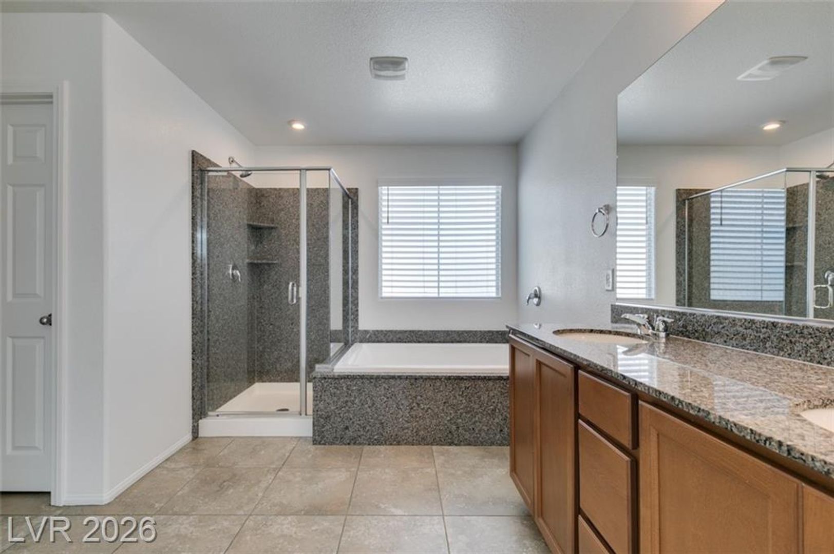 Welcome to this beautifully designed home in desirable Henderson! This residence offers a smart, functional layout for modern living. The open-concept main level features spacious living and dining areas, plus a chef-inspired kitchen with a large island, granite countertops, and upgraded appliances, perfect for entertaining. Includes a bedroom and full bathroom downstairs. Upstairs, enjoy a versatile loft, generously sized secondary bedrooms, and a serene primary suite with a large walk-in closet, dual sinks, and separate tub and shower. Tile flooring runs throughout the first floor. The low-maintenance backyard includes a paver patio, and the home also features an attached 2-car garage. Located in a great community with parks, a playground, and dog park, with easy access to shopping, dining, and more.